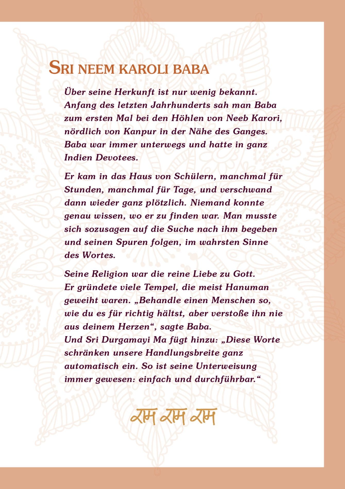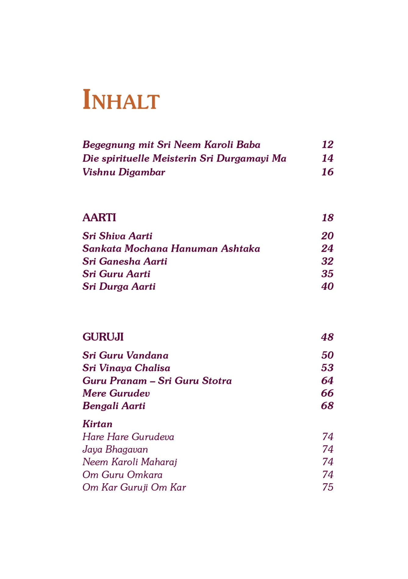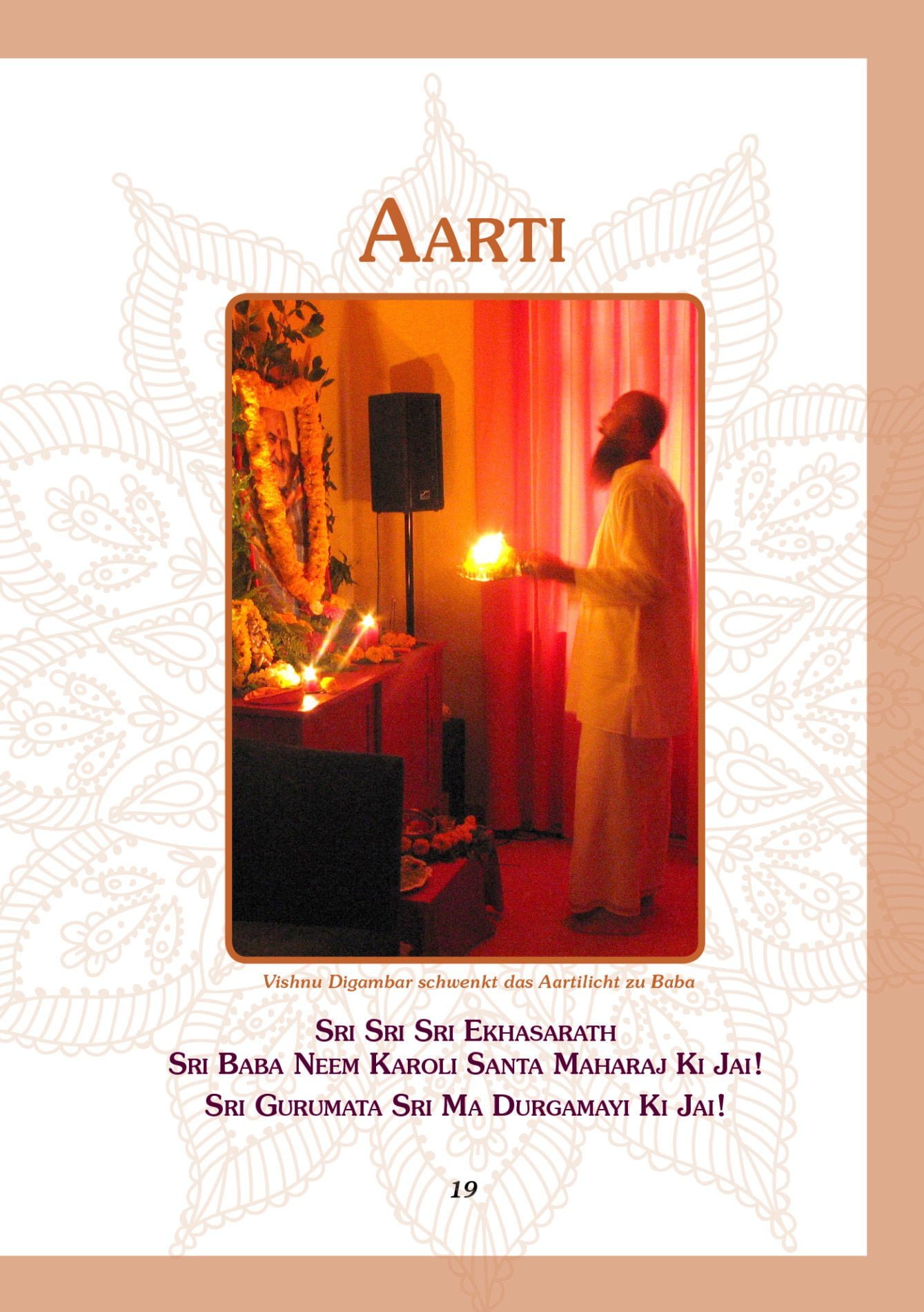 Die Aarti-Texte wurden zusammengestellt mit der liebevollen Unterstützung von Krishna Kumar Shah (K.K.), einem der engsten Devotees von Sri Neem Karoli Baba.