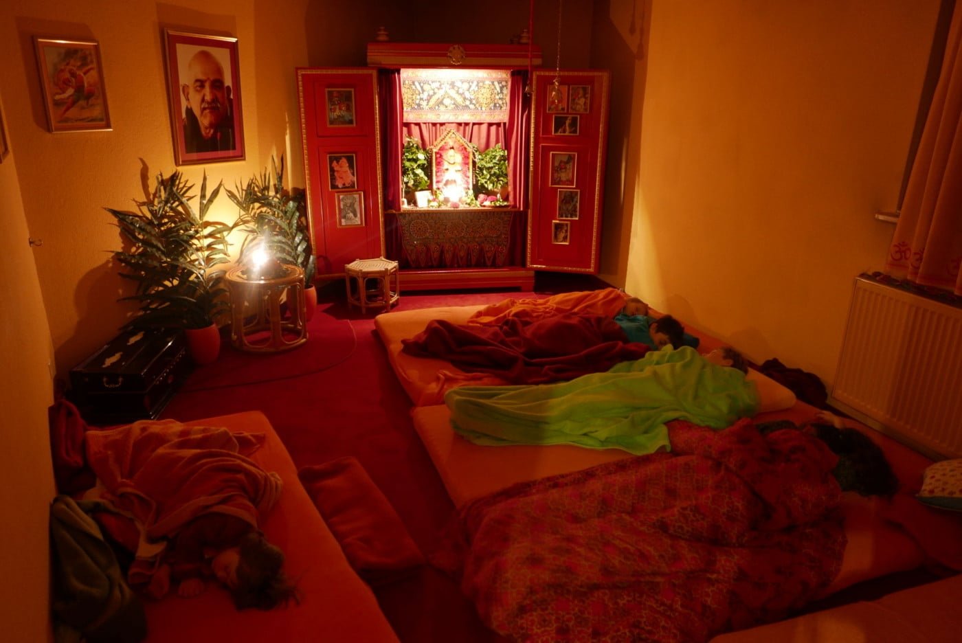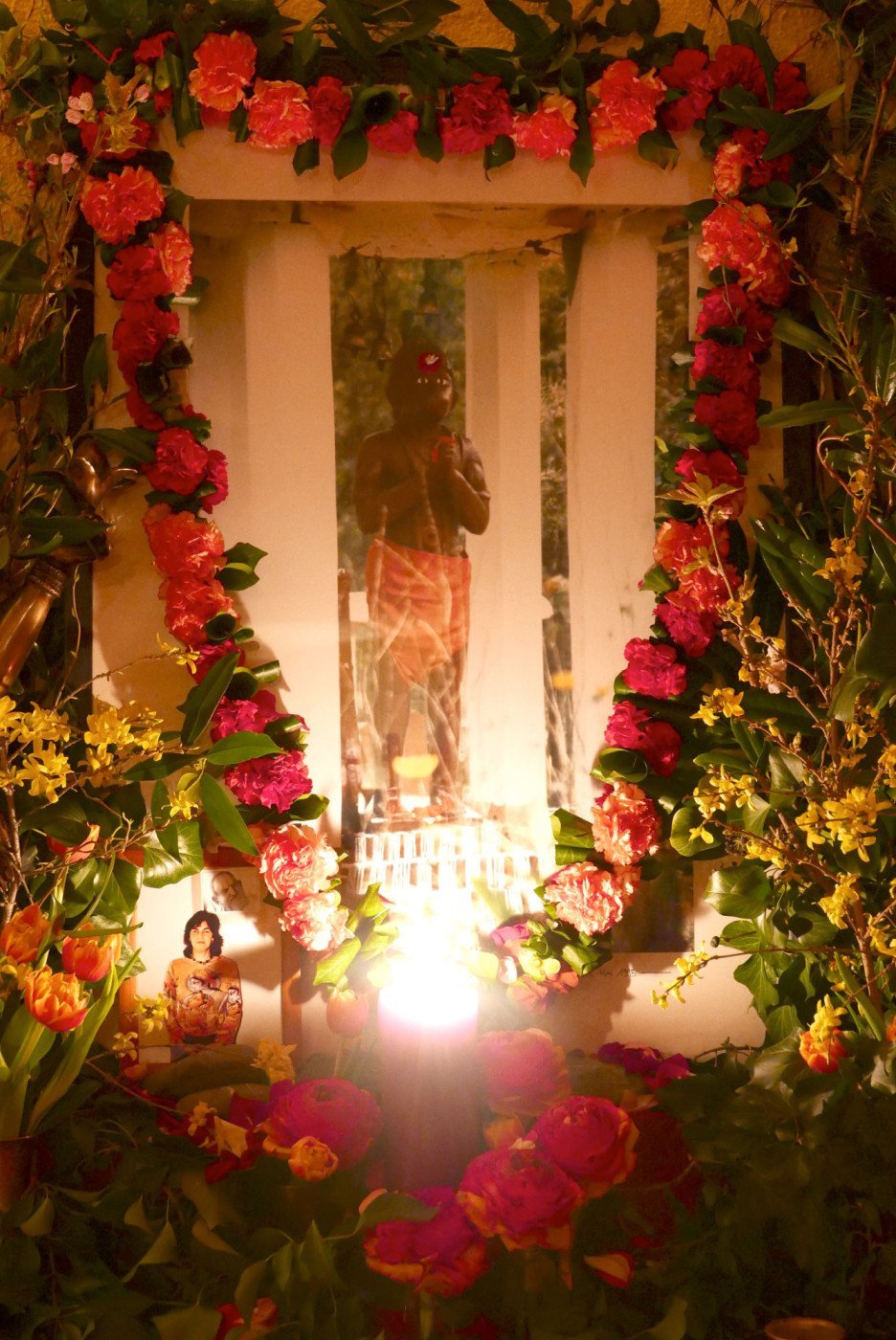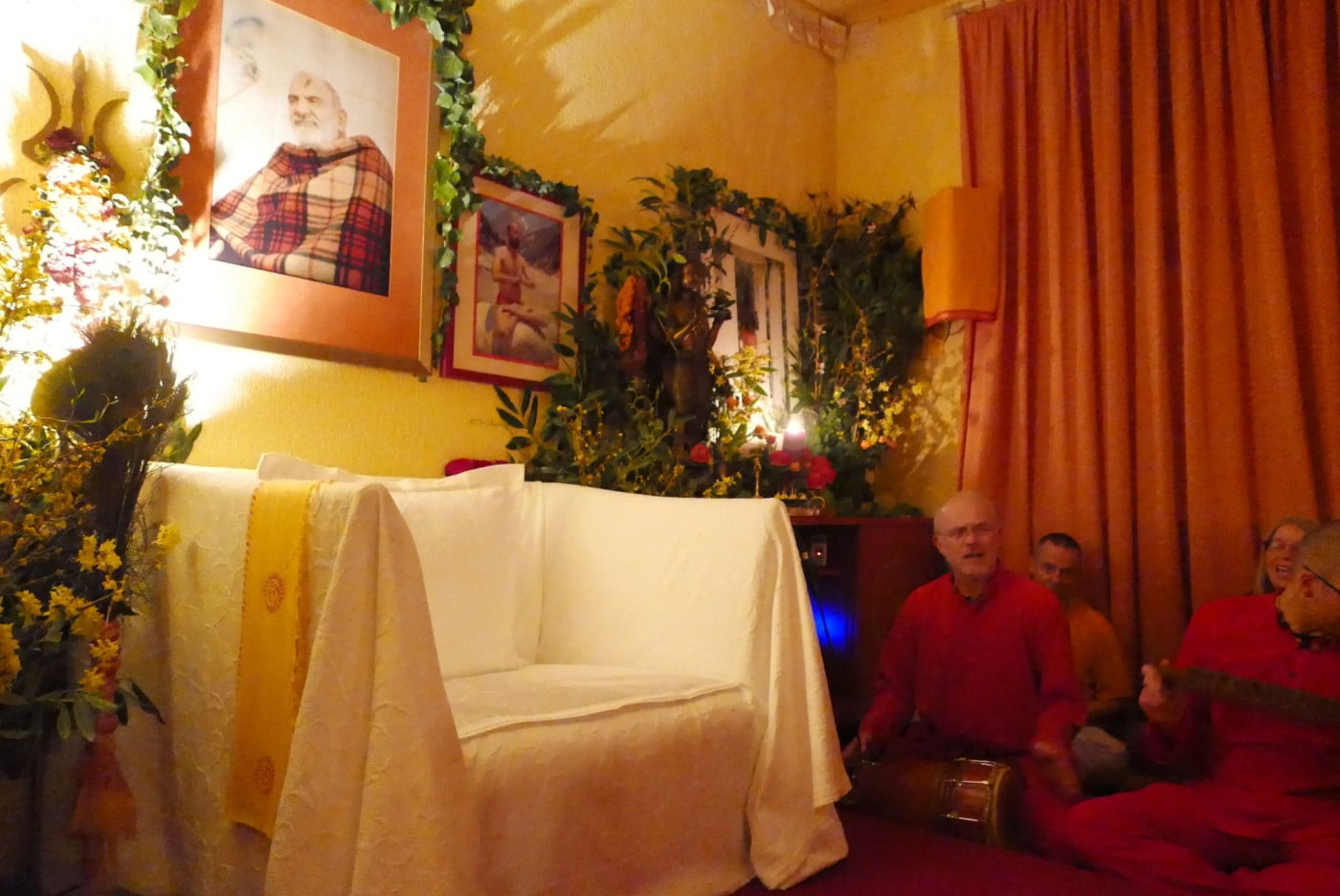 Ma’s Segen und Präsenz trugen uns von einer Chalisa zur nächsten, bis wir nach neuneinhalb Stunden, vom Singen durchdrungen bis in die Haarspitzen, Hanuman Ji zum Abschluss des Festes mit einer großen Aarti ehrten. Und anlässlich Samadhi’s erstem Todestag ließ Ma ein Bild von Samadhi zu Füßen Hanumans aufstellen, sodass wir mit diesem schönen Fest auch ihrer gedenken konnten. Am Ende der Aarti nahm Ma das Licht und schwenkte es zu allen Anwesenden mit den Worten: „Was für ein Wunder!“