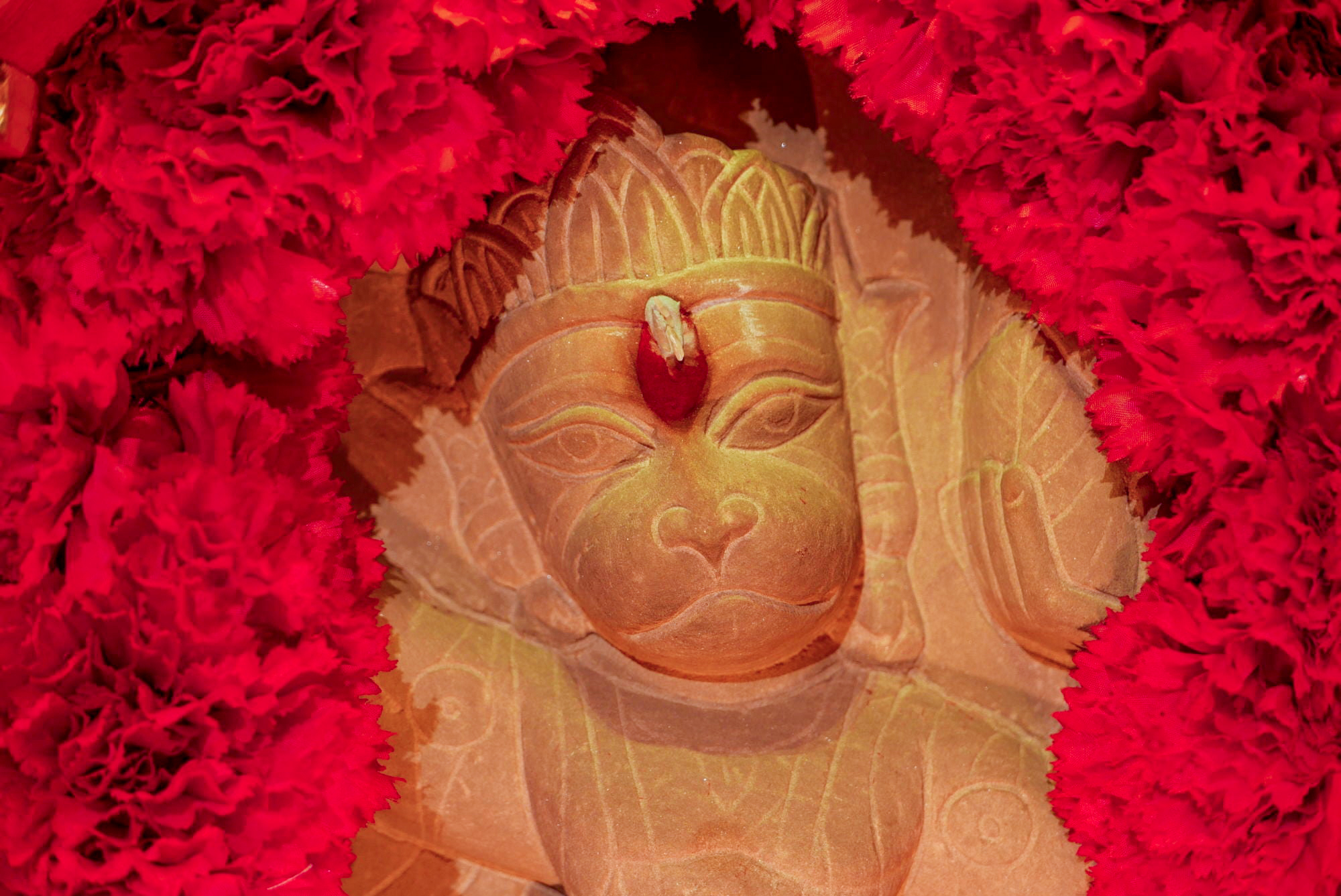 Nahaufnahme des Murti im Hanuman Tempel an Hanuman Jayanti 2015