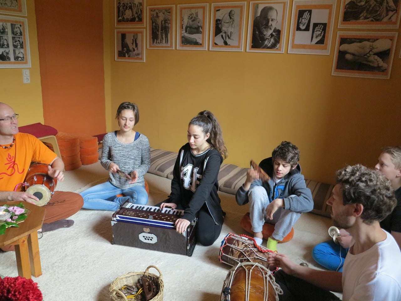 Tagsüber halfen die Kinder beim Karma Yoga im Ashram mit: in der Küche, im Tempel, in der Werkstatt, bei den Blumen. Die Jugendlichen haben gemeinsam Kirtansingen und -spielen geübt. Im abschließenden Darshan konnte Ma allen noch einmal begegnen und Prasad verteilen. Es war eine sehr lebendige Zeit.