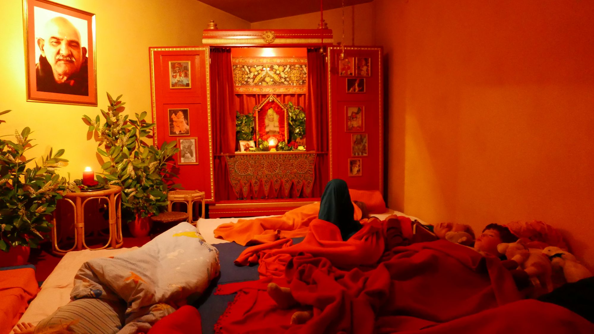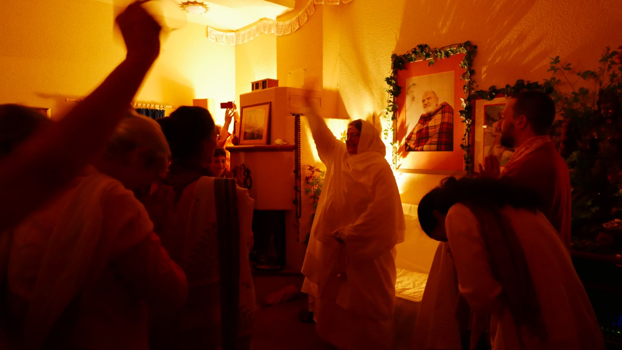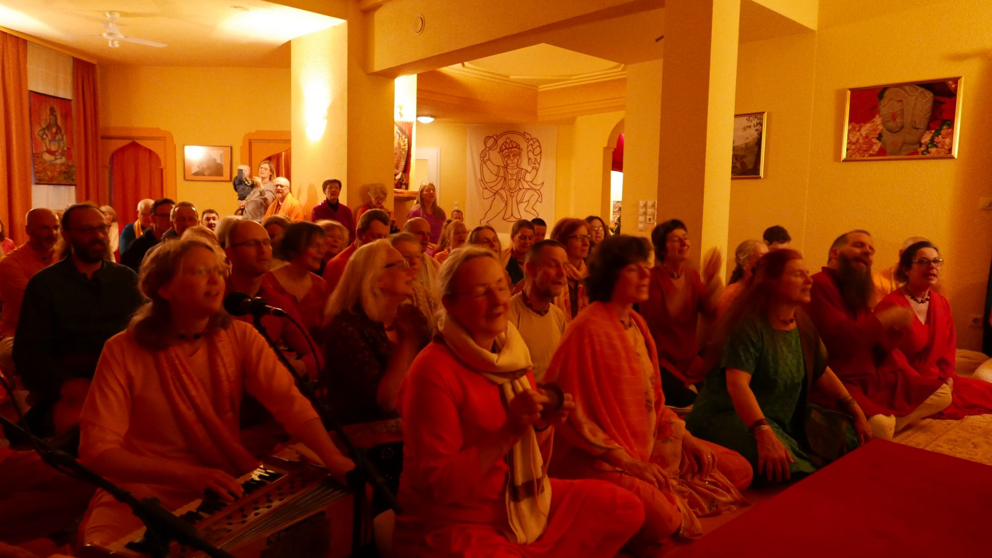 Unsere Meisterin Durgamayi Ma sang mit uns Schülern 108 Hanuman Chalisa durch eine ganze unbeschreibliche Nacht. Wir sangen uns durch alle inneren Schwierigkeiten, getragen, geführt und beflügelt durch unsere Meisterin, die uns mit größter Freude und Liebe geleitete.