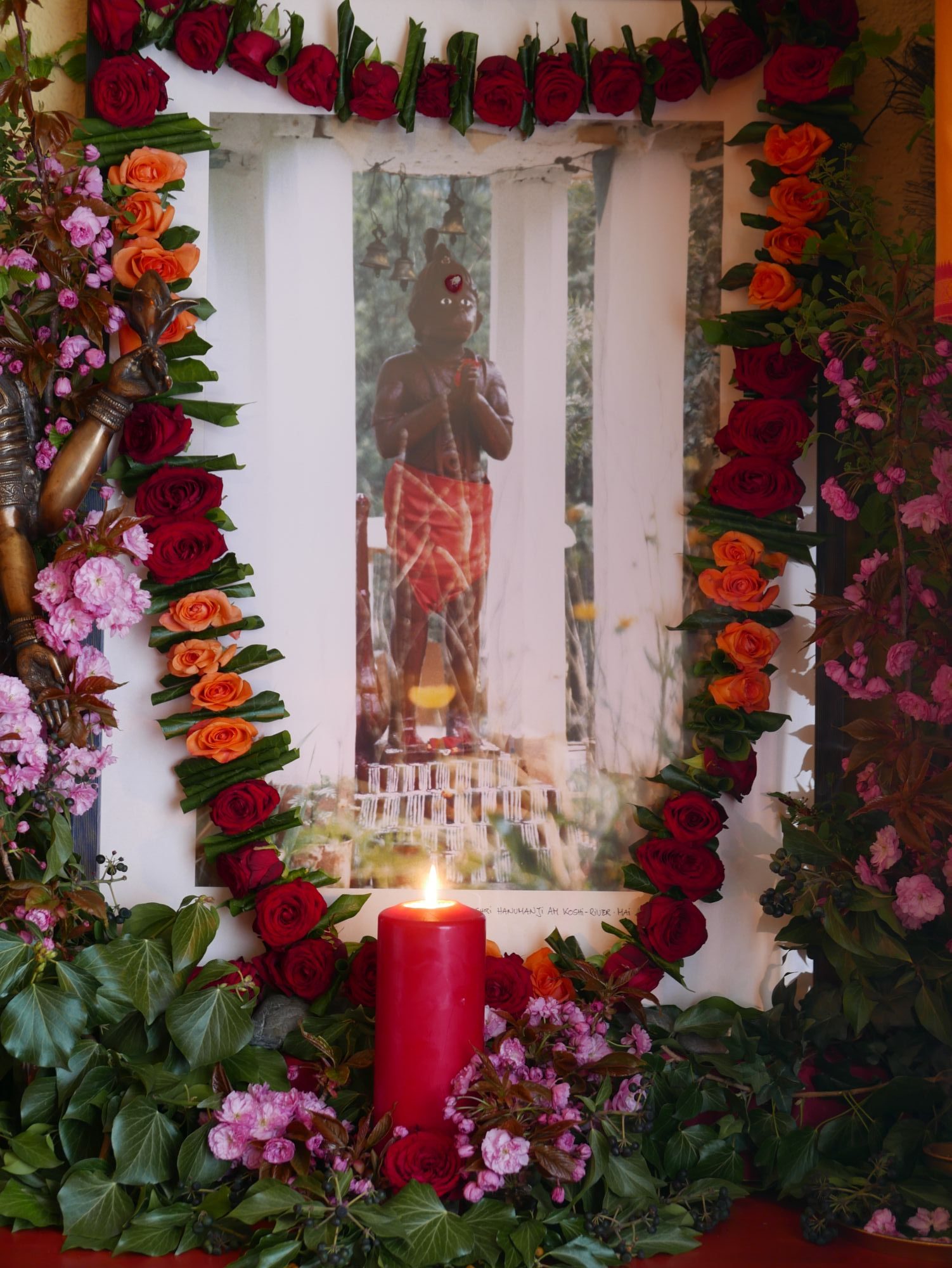 In einer heiligen Stille ehrten wir unsere Ma, die Verkörperung der bedingungslosen Hingabe – Hanuman, mit einer Aarti. Die Glocke des Pujari klang leise und ehrfürchtig durch den Darshanraum und alles war vollkommen.