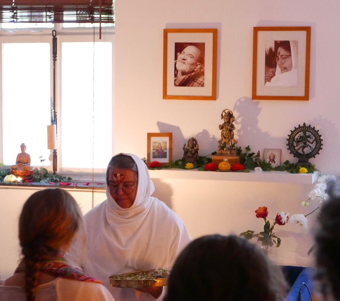 Freitag, Samstag und Sonntag gab Ma Darshan und es kamen viele Menschen, einige von ihnen zum ersten Mal. Das Wochenende war erfüllt von der Begegnung mit unserer Meisterin und ihren Lehren, durch die Sie uns zum Raum des höchsten Bewusstseins führte, zur inneren Ausrichtung während des Kirtansingens sprach und die Wichtigkeit der Selbstreflexion auf dem spirituellen Weg hervorhob. Es gab Momente ekstatischen Kirtan und auch tiefster Stille.