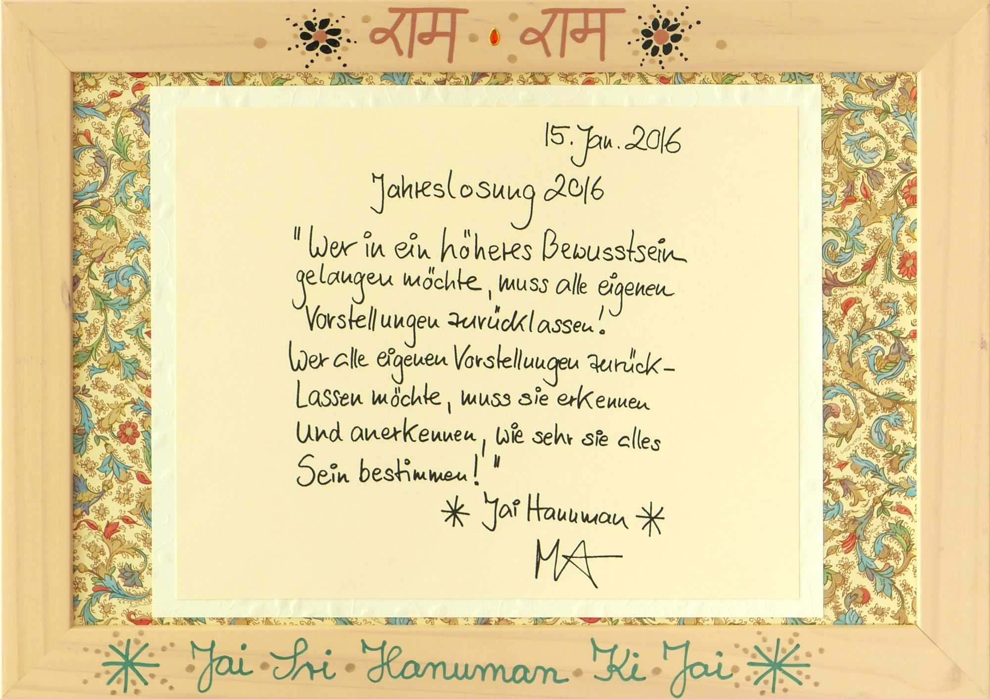 Inspiriert durch einen Schüler, der sich an den Rand seiner Frustration über diesen nicht kontrollierbaren spirituellen Weg wagte, schrieb Durgamayi Ma die Worte der Jahreslosung 2016: