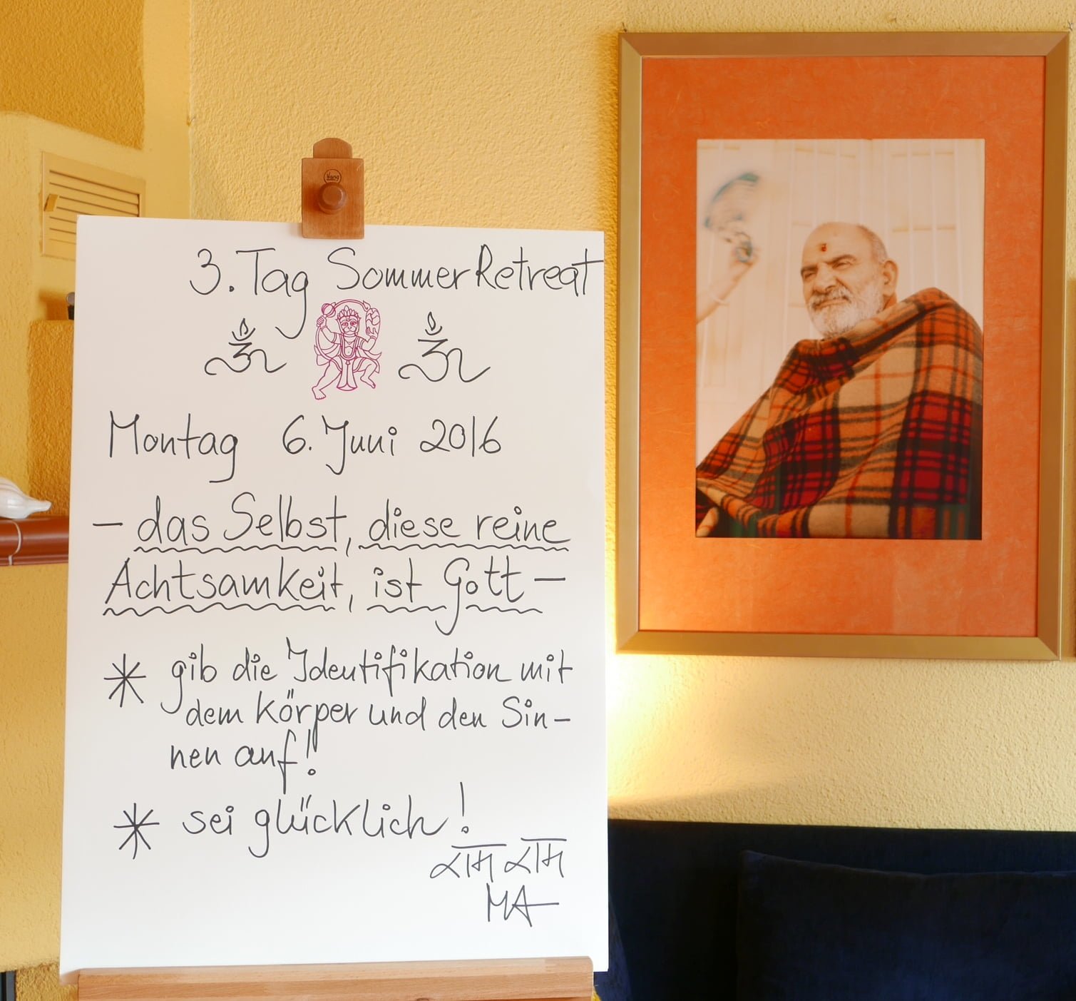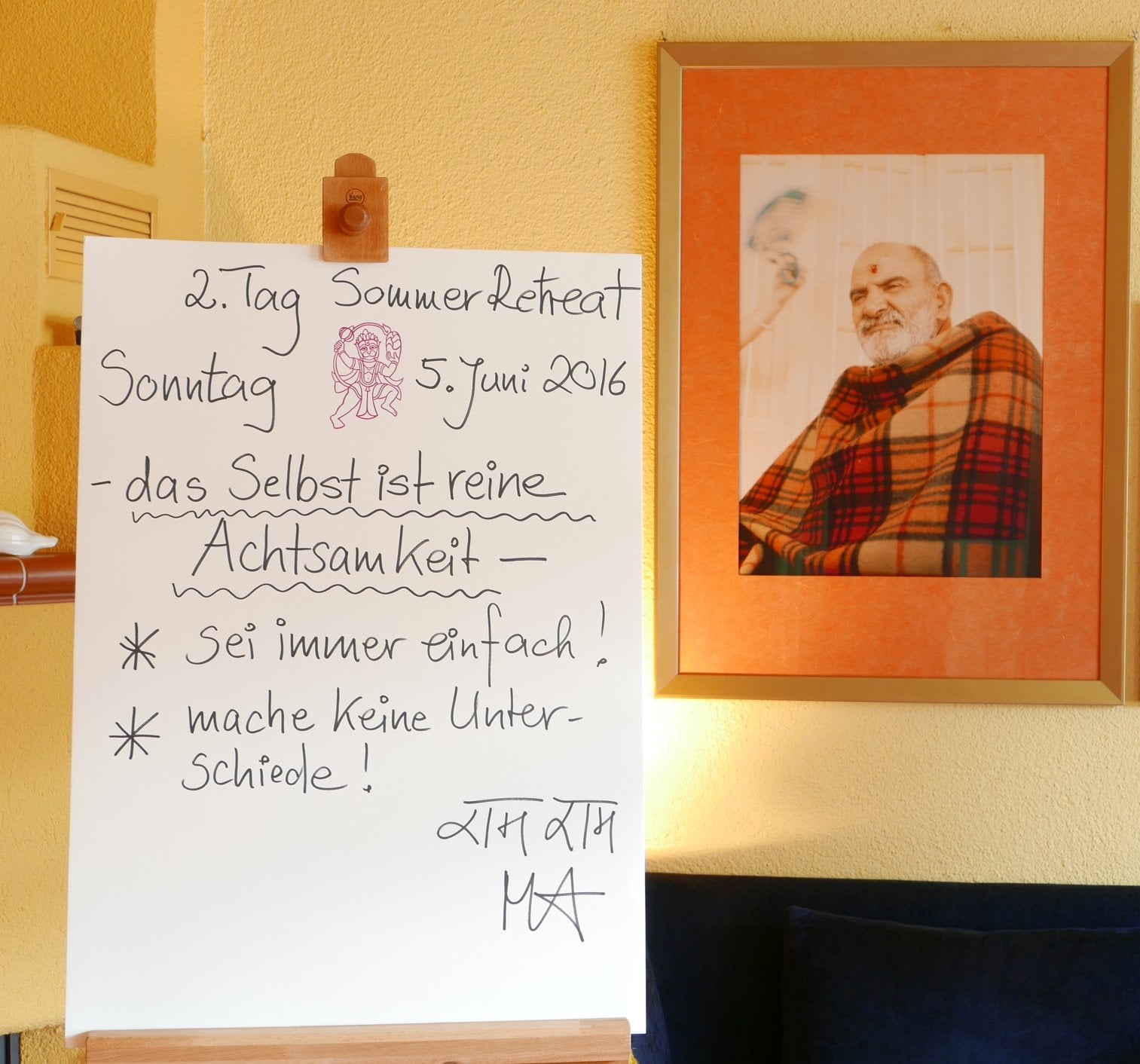 Dieses Mandala ist wie eine Zusammenfassung der tiefen Unterweisungen, die Durgamayi Ma uns – ihren Schülern, die wir zu diesem Sommer Retreat im Ashram Brindavon zusammengekommen waren – in fünf sehr intensiven Retreat-Tagen gab.