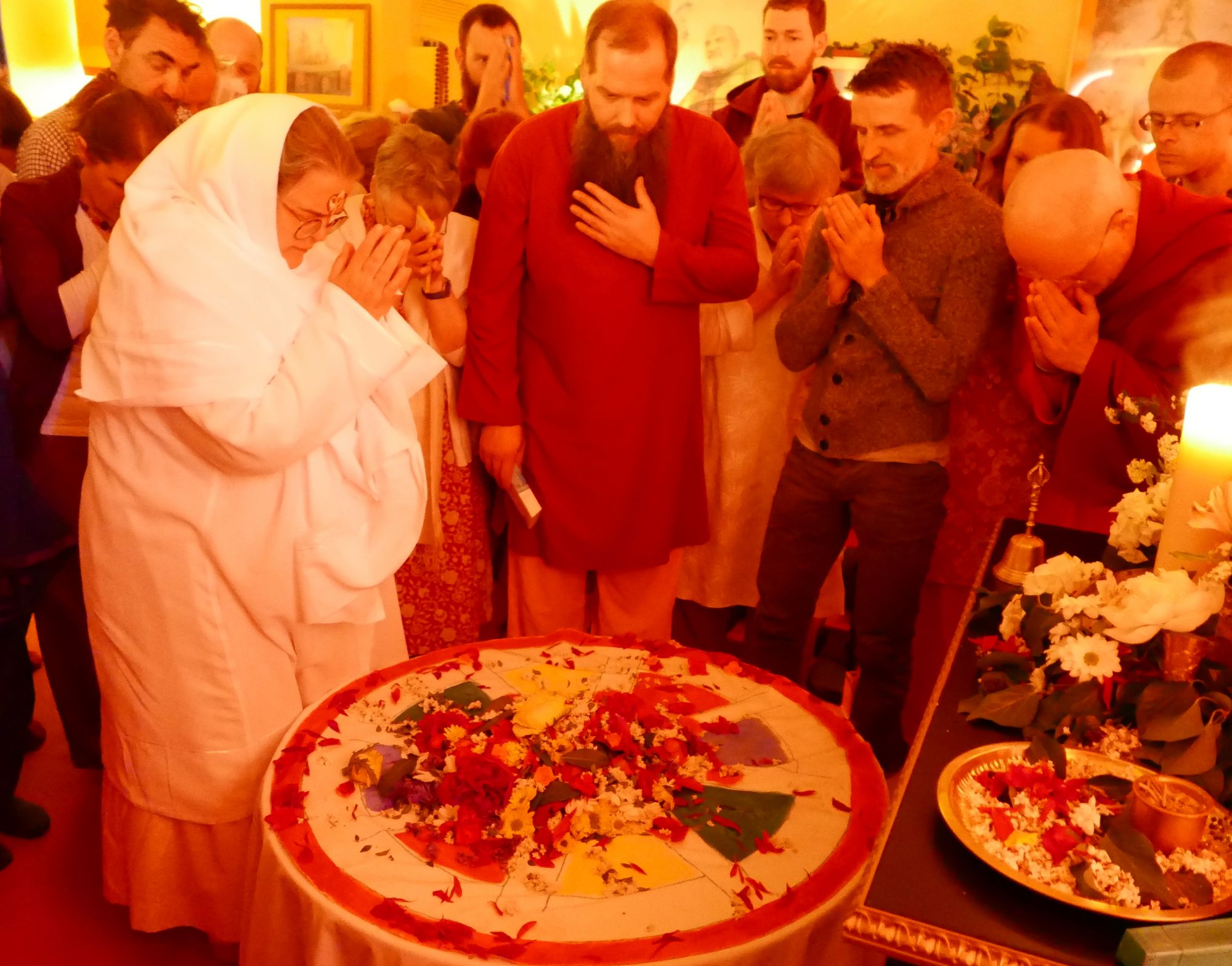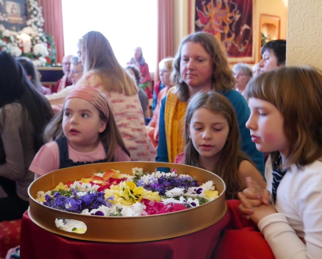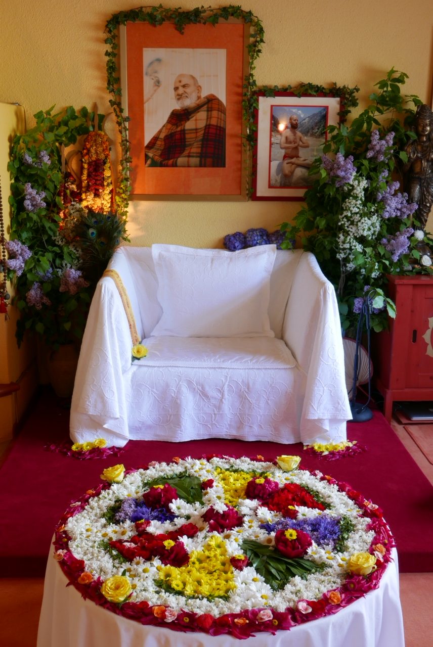 Am Sonntag löste Ma zum Abschluss des Festes das Blumenmandala auf und erinnerte uns damit daran, wie kostbar und einzigartig jeder Moment ist, weil er unwiederbringlich vergeht.