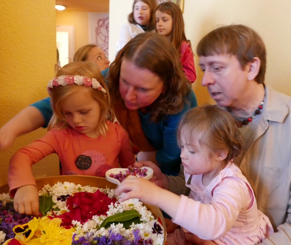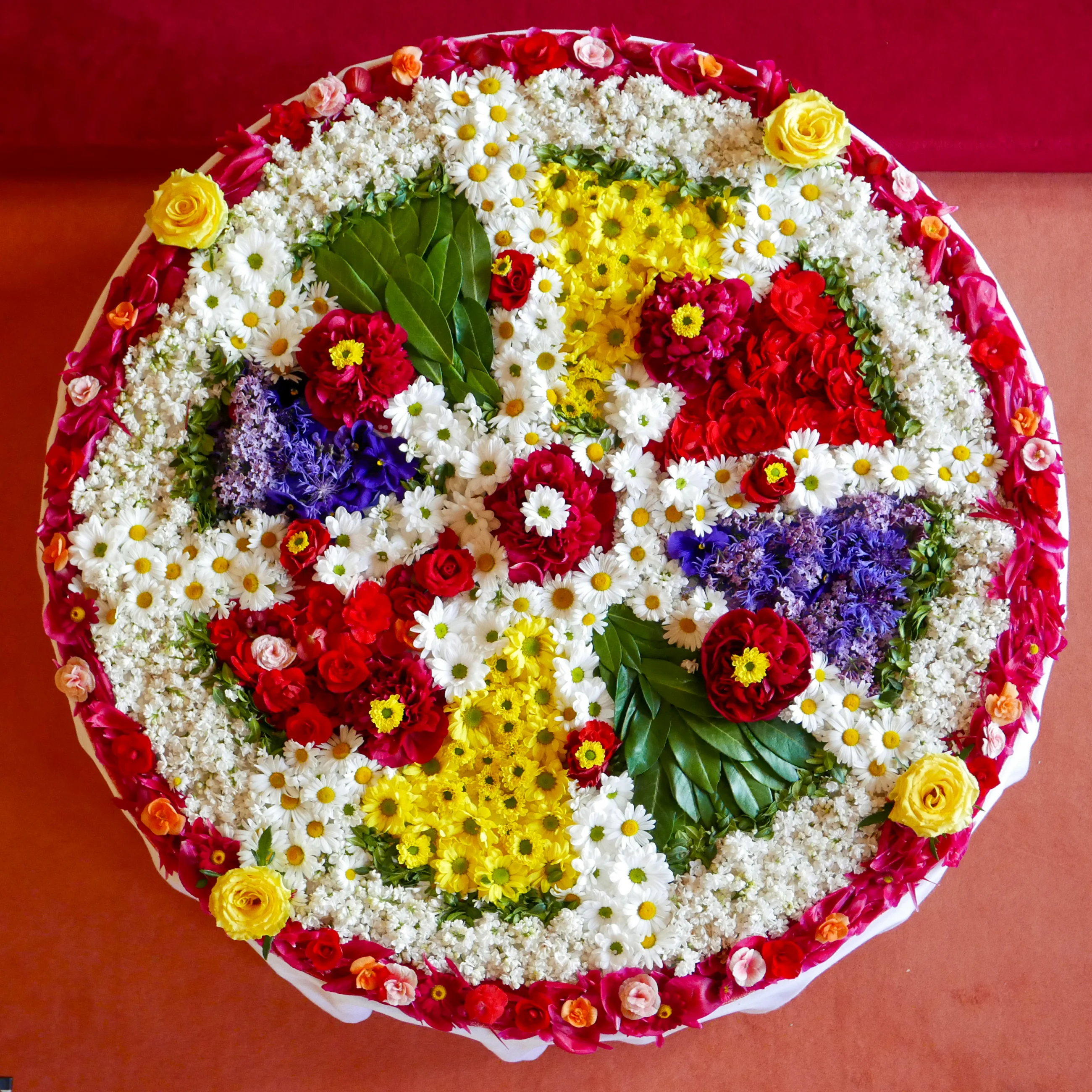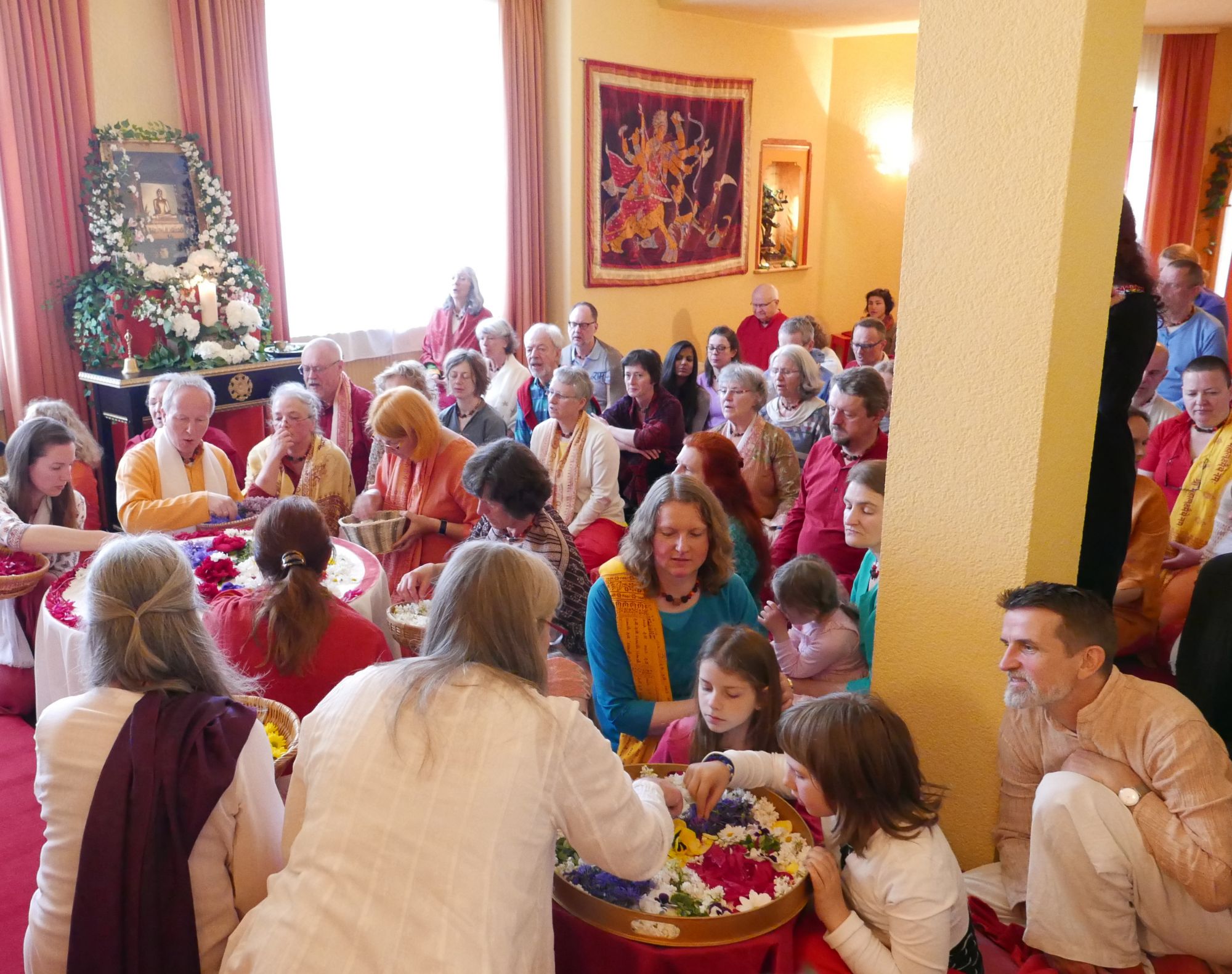 Am Sonntag löste Ma zum Abschluss des Festes das Blumenmandala auf und erinnerte uns damit daran, wie kostbar und einzigartig jeder Moment ist, weil er unwiederbringlich vergeht.