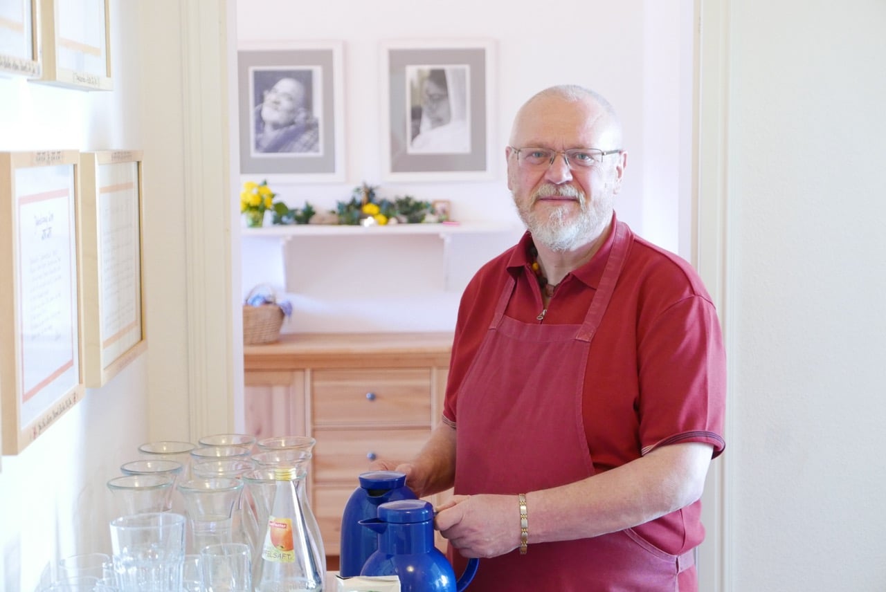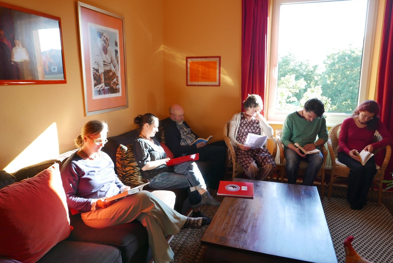 Jeden neuen Tag des Retreats hoffen wir, dass es Ma’s Körper besser geht und wir Ihren Darshan empfangen können und am Montag Abend kommt Ma – und gibt uns allen Darshan. In der Art und Weise, wie Ma zu uns spricht, wird ganz deutlich, dass es fast allen Schülern in den Tagen des Retreats gelungen ist, sich einzulassen, obwohl alles ganz anders gekommen war als erwartet, das Sein mit Ma ist der Höhepunkt des Retreats.