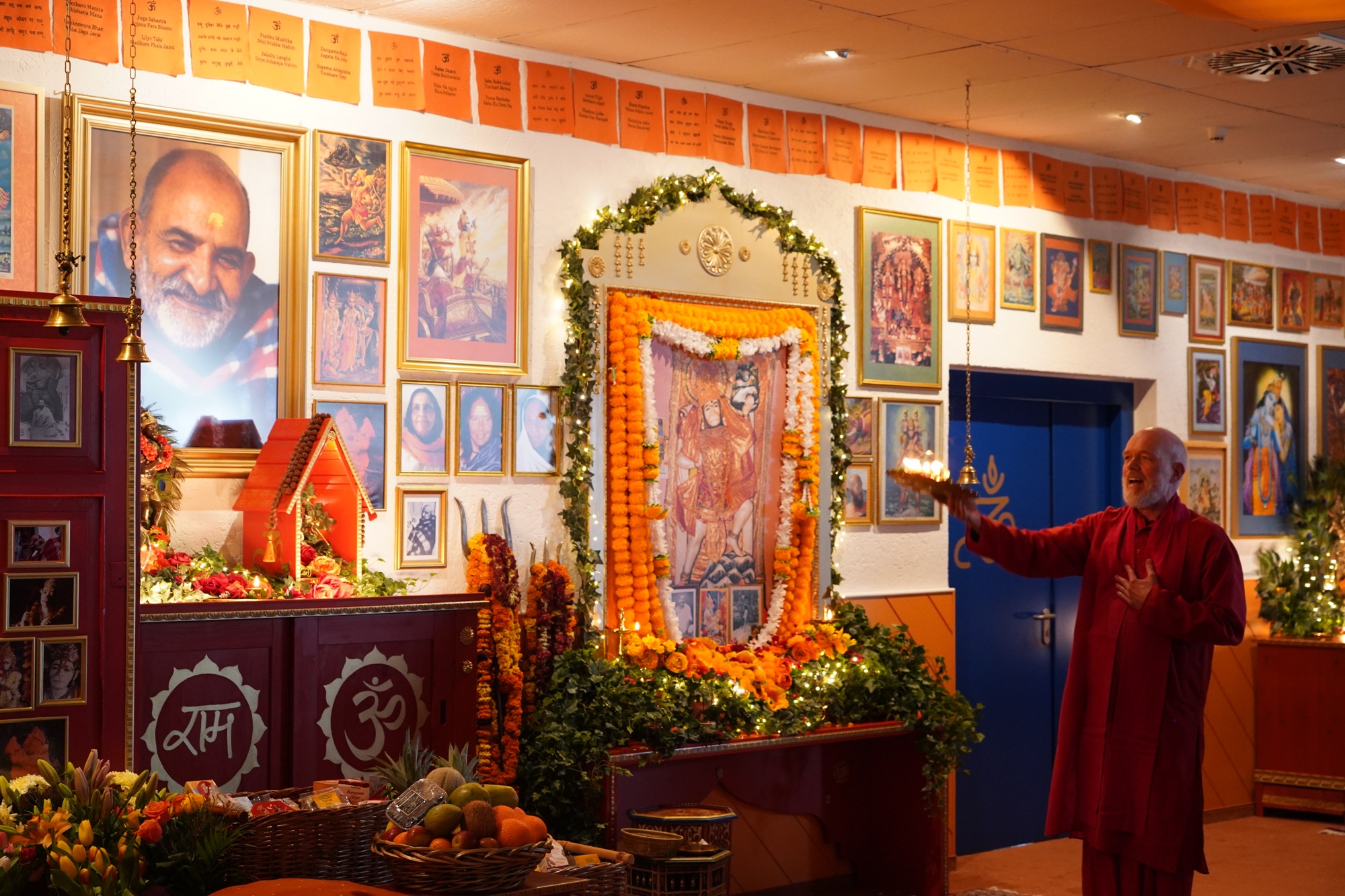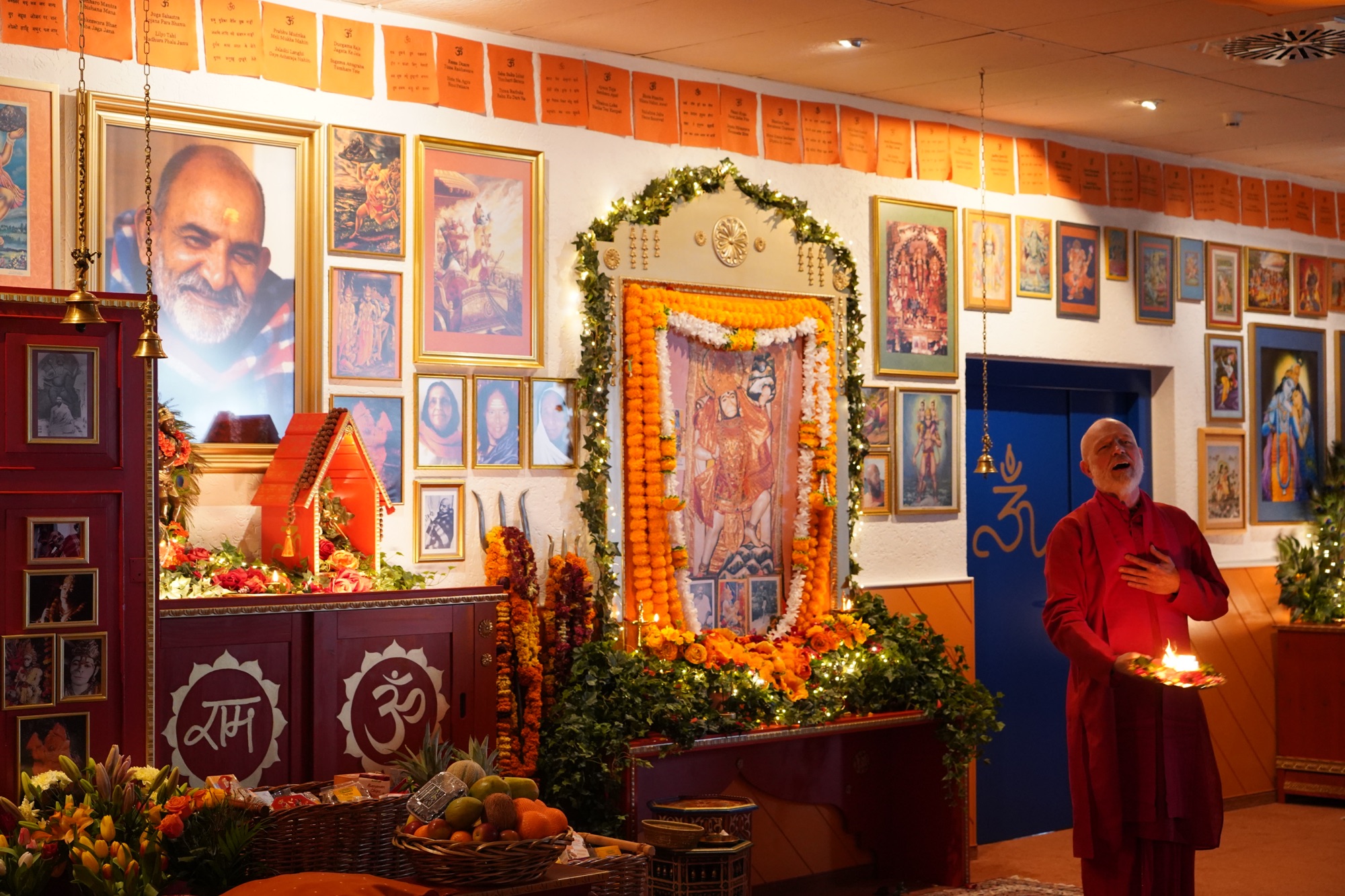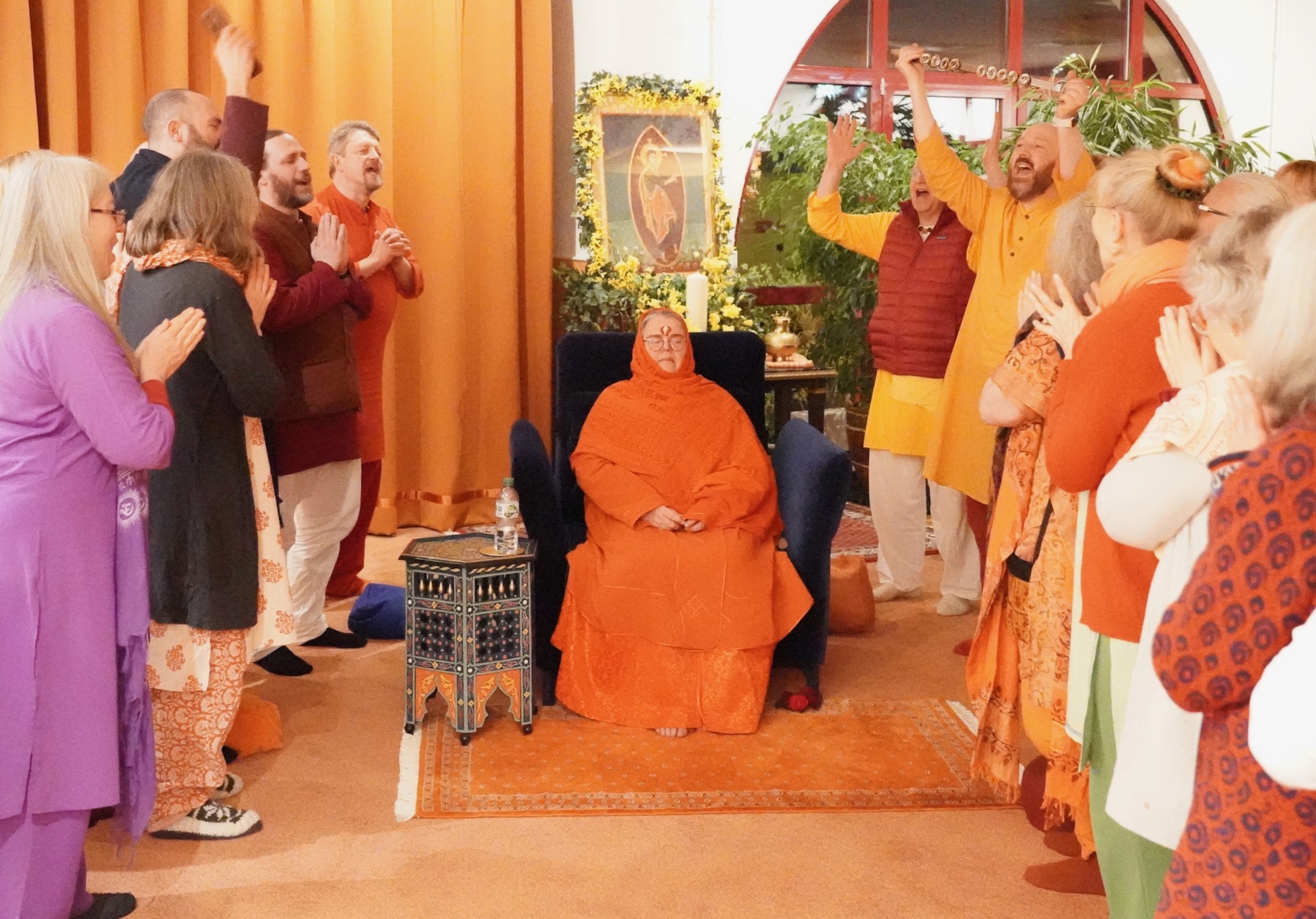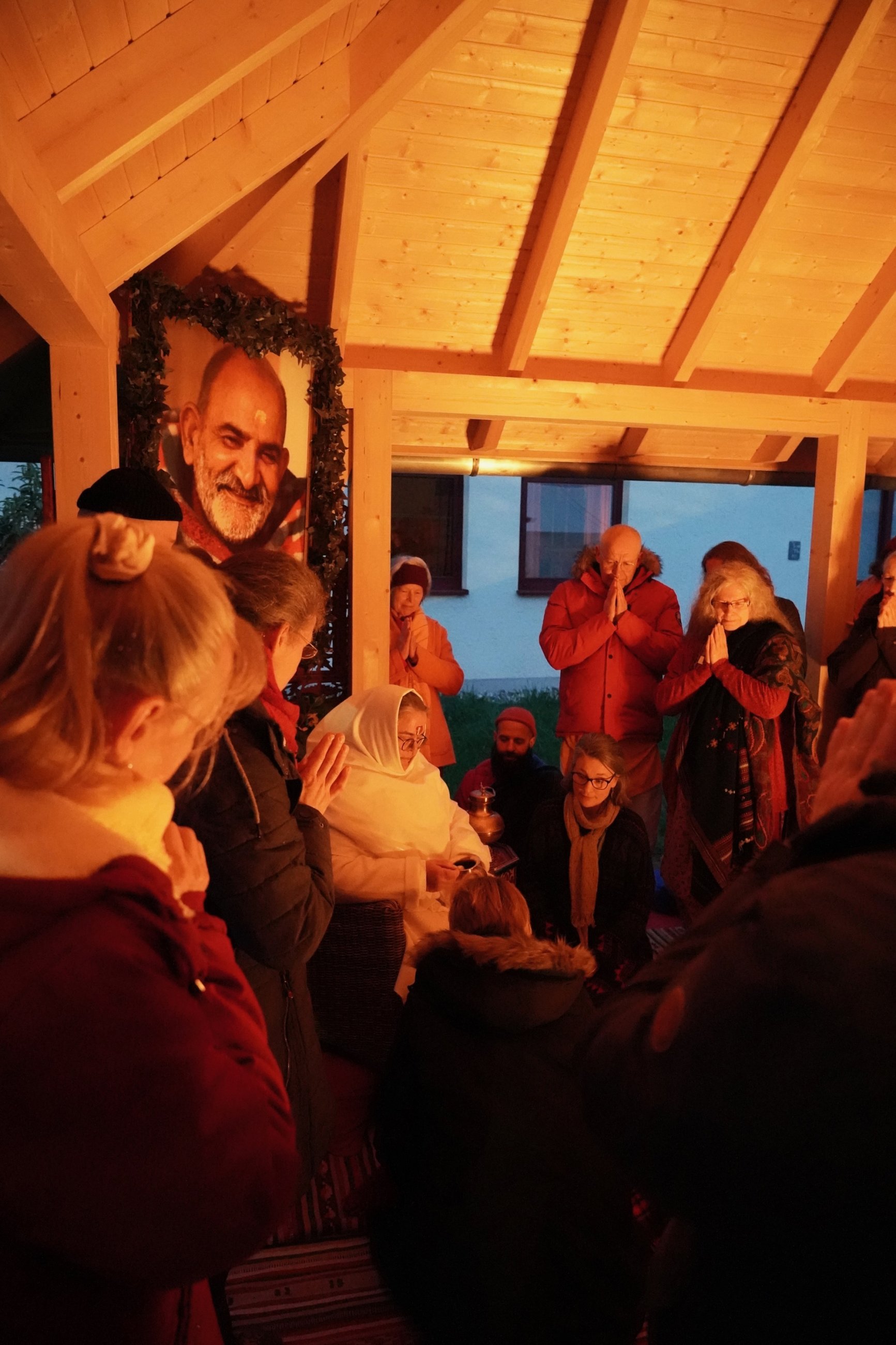 Am Ostersonntag waren wir früh morgens noch vor der Dämmerung mit Ma in Stille am Dhuni. Einzeln empfingen wir das Osterwasser aus Ma’s Hand, von dem Ma uns sagt: