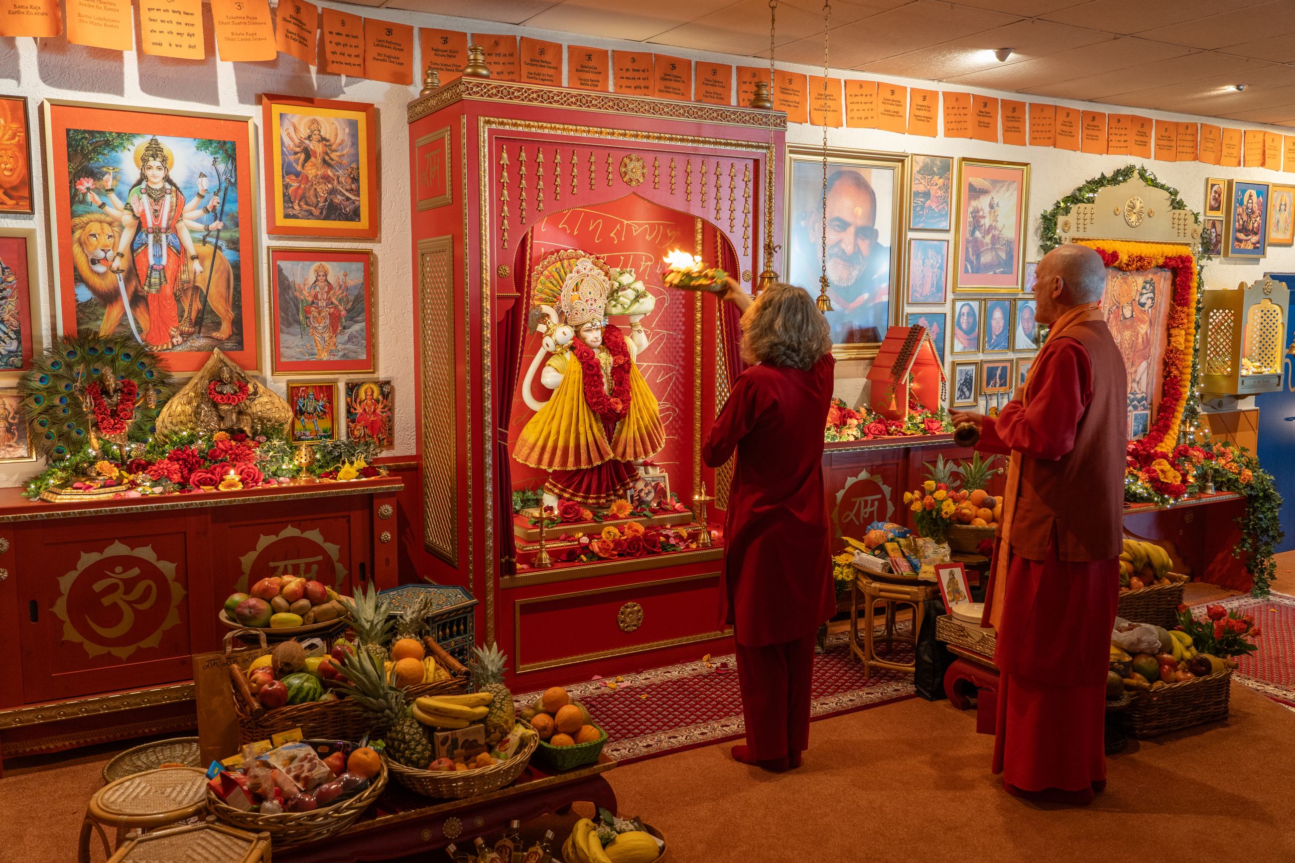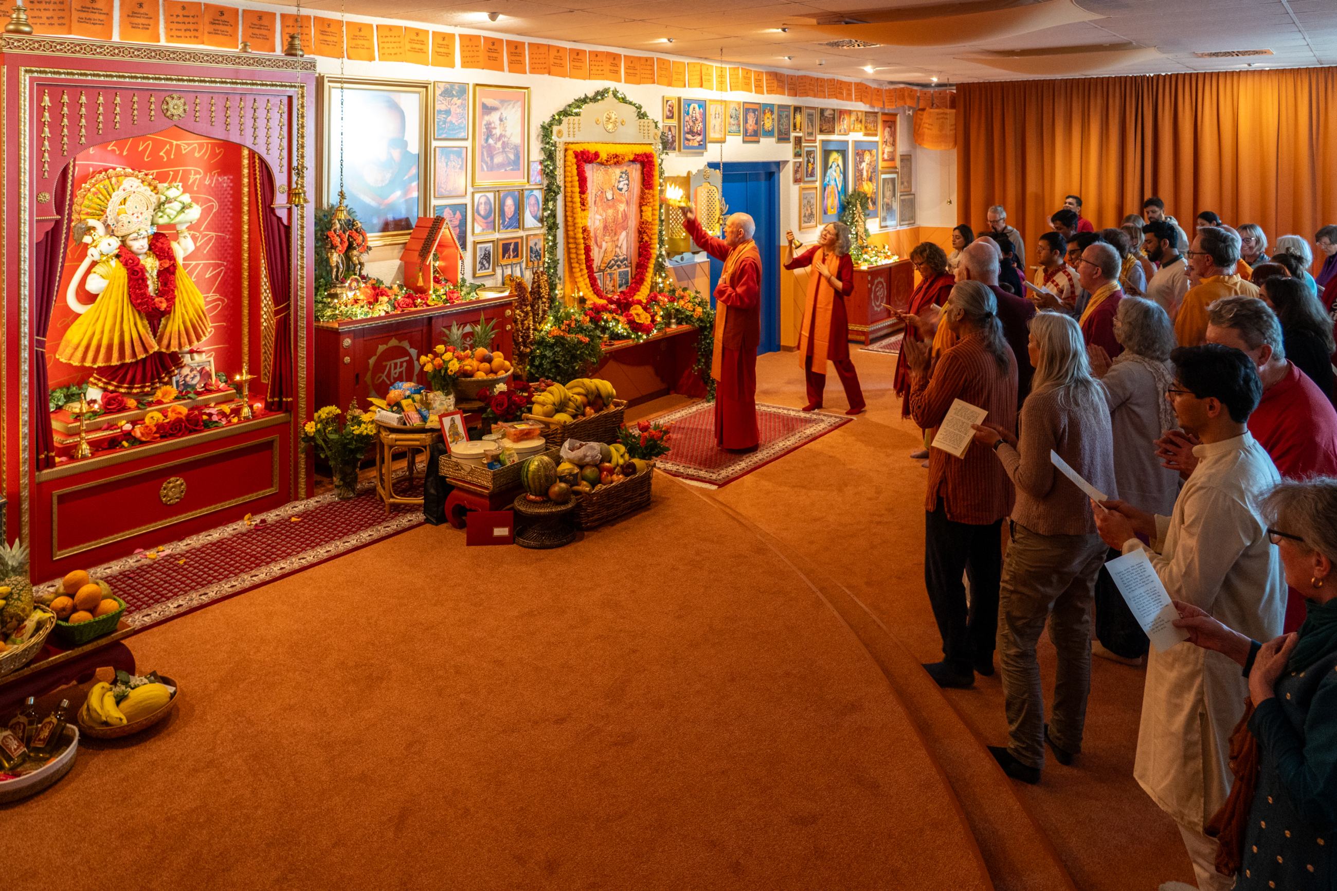 Es kamen so viele Menschen wie noch nie zuvor ins festlich geschmückte Baba Mandir; aus Deutschland, England, der Schweiz, Holland, Belgien und Tschechien, darunter auch viele indische Devotees, die in Europa leben. Einige waren schon öfter hier, andere zum ersten Mal. Manche wollten an diesem glückverheißenden Tag einfach nur Hanuman ihre Verehrung erweisen, viele blieben die ganze Nacht.