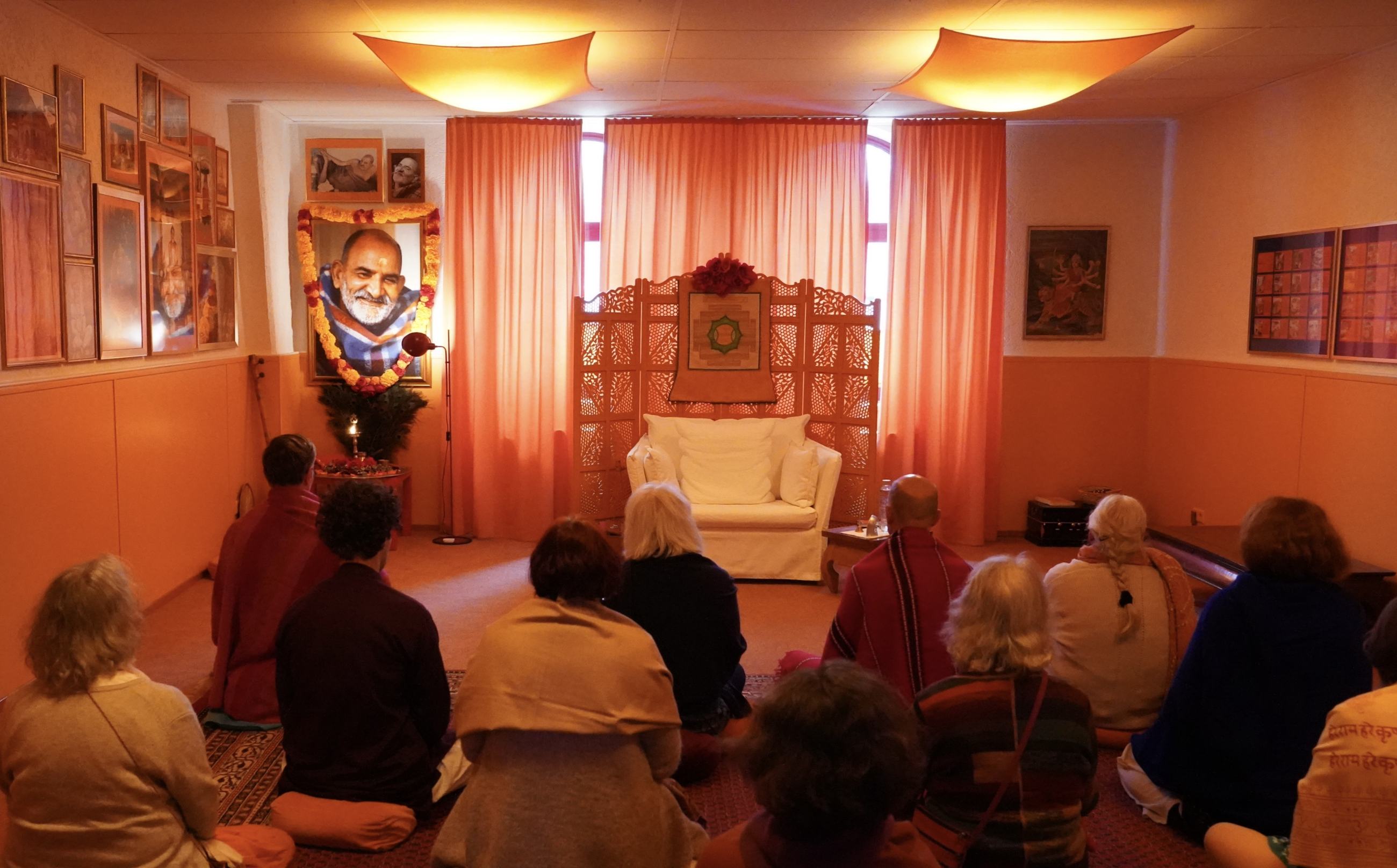 Voller Sehnsucht nach der Begegnung mit dem Meister übten wir Freitagabend gemeinsam die Herzchakra-Meditation. Am nächsten Morgen empfing Ma alle, die gekommen waren, zum Darshan in Stille. Eine Schülerin erzählt: „Es war, als wären wir im Himmel - alles so deutlich erlebbar, jeder einzelne Gedanke, der aufkam und wieder verschwand, und immer wieder das Zurücksinken in eine tiefe, tiefe Stille, die den ganzen Raum erfüllte. Was für ein Geschenk - es hat mein Herz weit gemacht und mich durch das ganze Wochenende getragen.“