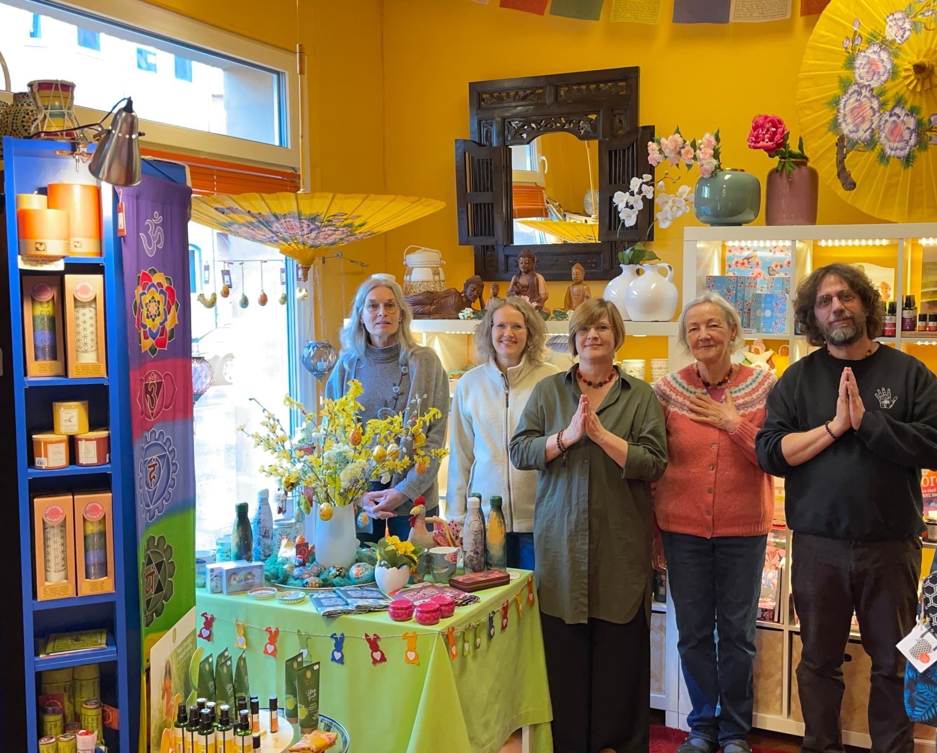 Mit Freude reinigen wir den Tempel, die fünf Stockwerke des Ashram Brindavon und fegen die Terrassen und den Hof. In der Küche bereitet die Küchen-Crew Prasad – das Mittagessen – für alle zu. Den Ashramladen dekorieren Schüler:innen der Jahreszeit entsprechend für Ostern.