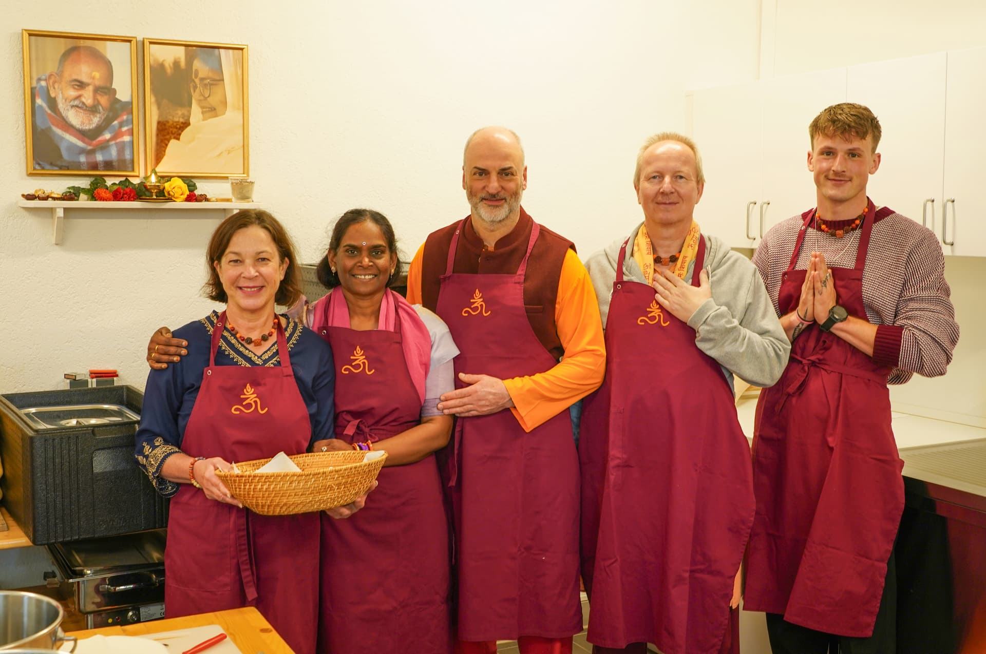 Wir hatten Besuch im Ashram von einem jungen Inder mit seinen Eltern, die aus Indien gekommen waren, um den Ashram kennenzulernen. Sie waren zum Singen der Hanuman Chalisa im Baba Mandir und übernachteten im Ashram. Mein Seva am nächsten Vormittag war, mit den Eltern zusammen die Erdnuss-Laddhus zu rollen. Da ich nicht wusste, wie ich mich mit ihnen verständigen könnte, hatte ich sehr starke Vorbehalte. Für das Rollen der Laddhus hatte ich alles vorbereitet und mir einen Moment Zeit genommen, um mich innerlich auf Ma auszurichten und das Seva für Ma zu machen. Das hat für mich alles geändert. Wir haben ruhig und einfach zusammen die Laddhus gerollt und bis zur Vesperpause waren wir fertig mit 153 Stück. Das habe ich am letzten Bhakti-Wochenende Ma so berichtet, und Ma sagte mir dazu: