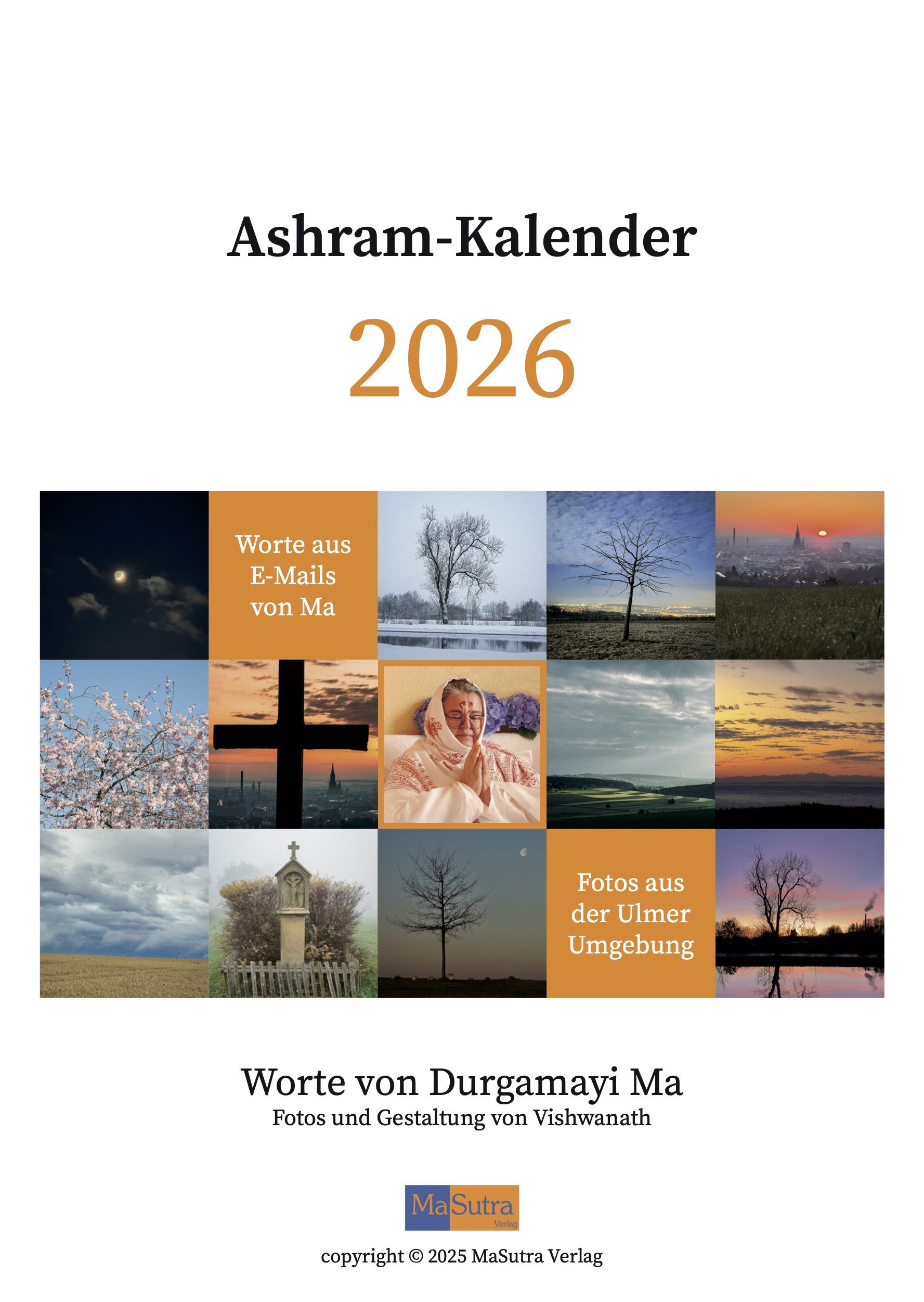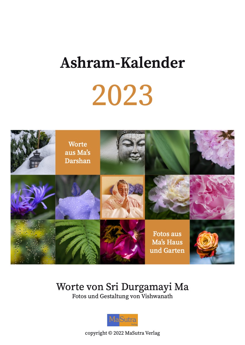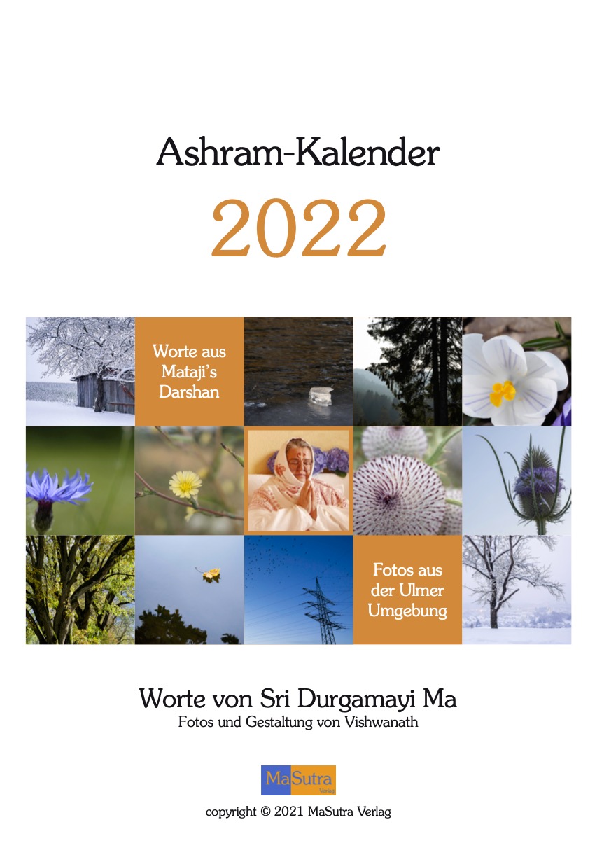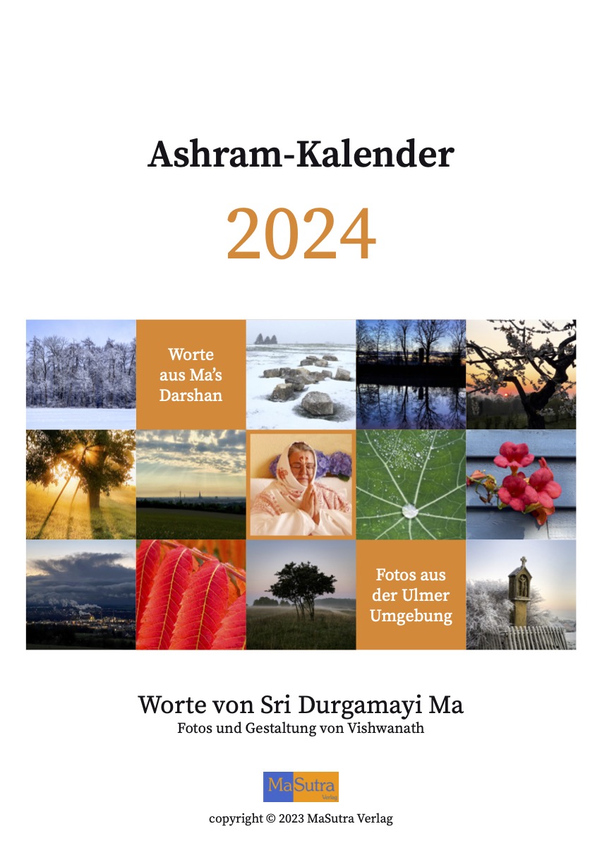 Seit 2004 erscheint jedes Jahr ein Kalender des Ashram. Für jeden Monat gibt es ein Kalenderblatt mit Worten von Durgamayi Ma - mit einem schönen Bild. Die Fotos für diese Kalender sind von von Ma’s Schüler Vishwanath.