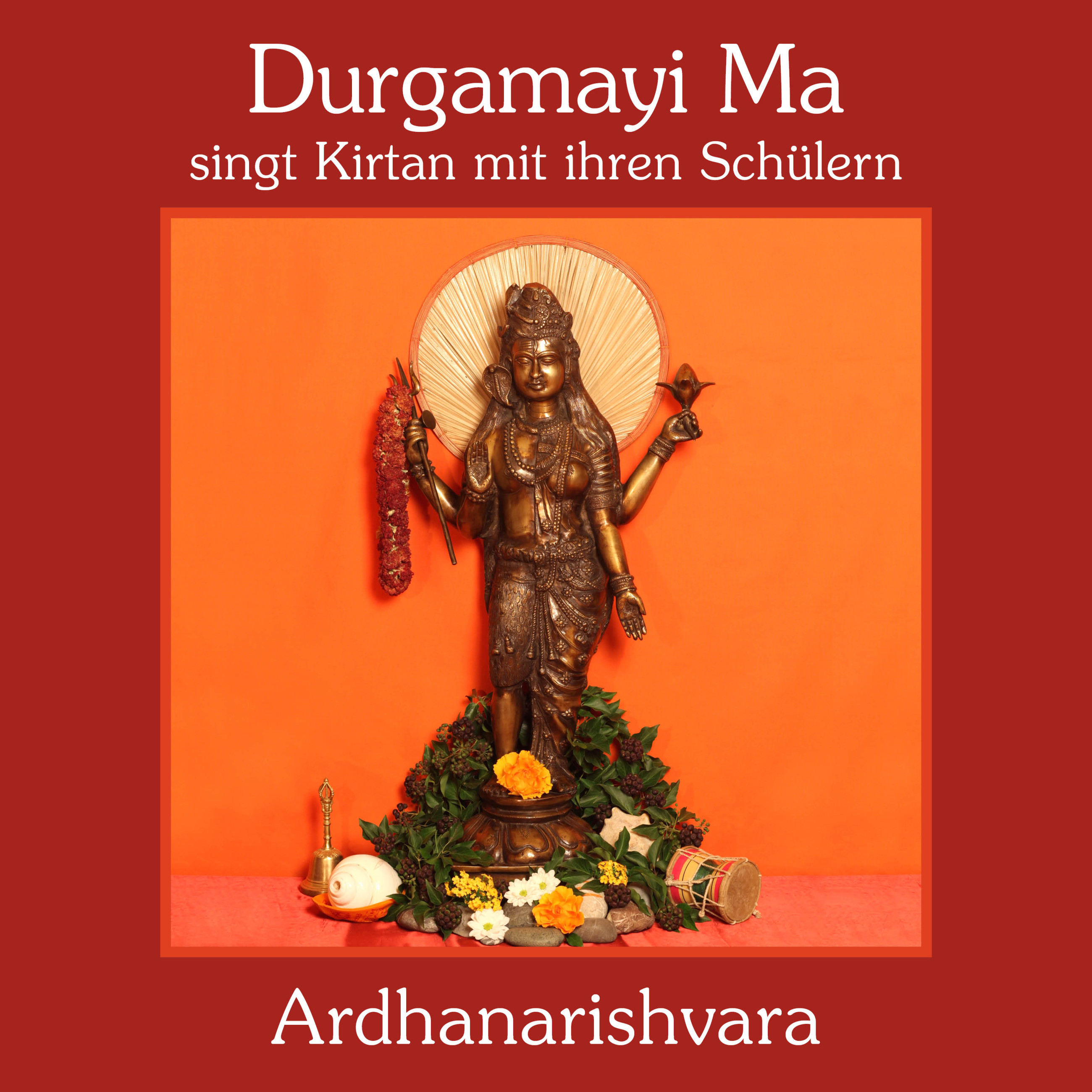 Ardhanarishvara ist der Name des auf der CD abgebildeten Murti. Es zeigt Gott Shiva zusammen mit seiner Gemahlin Parvati in einer Gestalt, die halb Mann und halb Frau ist. Im Tempel des Ashram steht Ardhanarishvara rechts von Ma’s Thakat auf der Puja. Diese CD enthält drei Live Aufnahmen von Kirtan, die von Ma’s Chela im Ashram Brindavon gesungen wurden.