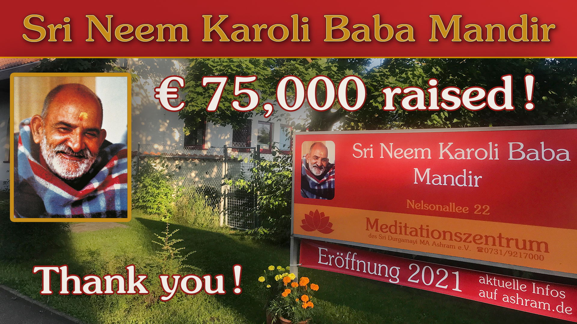 Over 75.000 Euro donated for Sri Neem Karoli Baba Mandir!