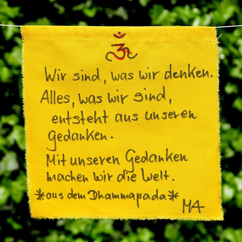 Ma also writes these first three lines on the prayer flag - which along with many others is hung in front of the ashram so that the wind carries the prayers out into the world.