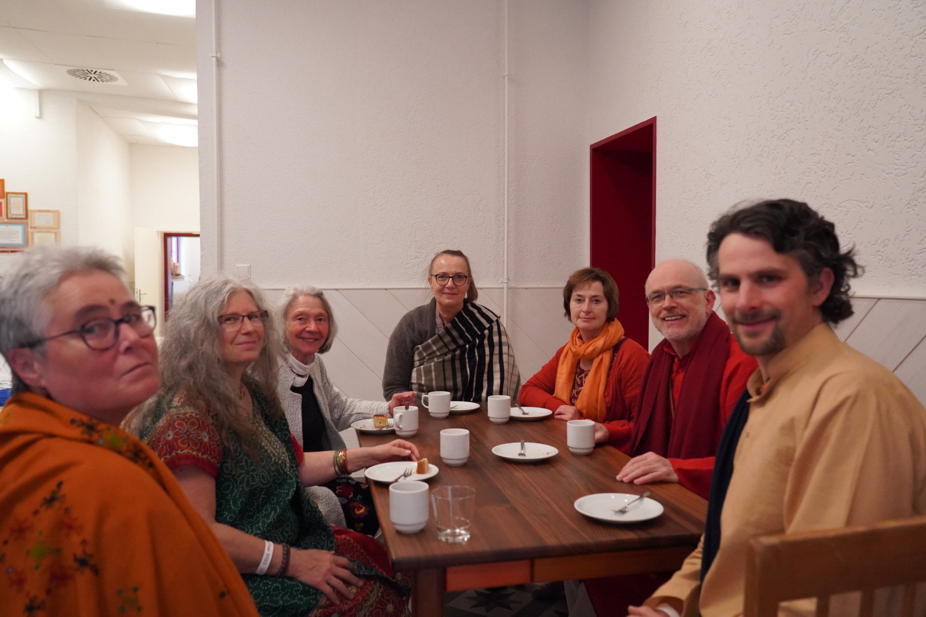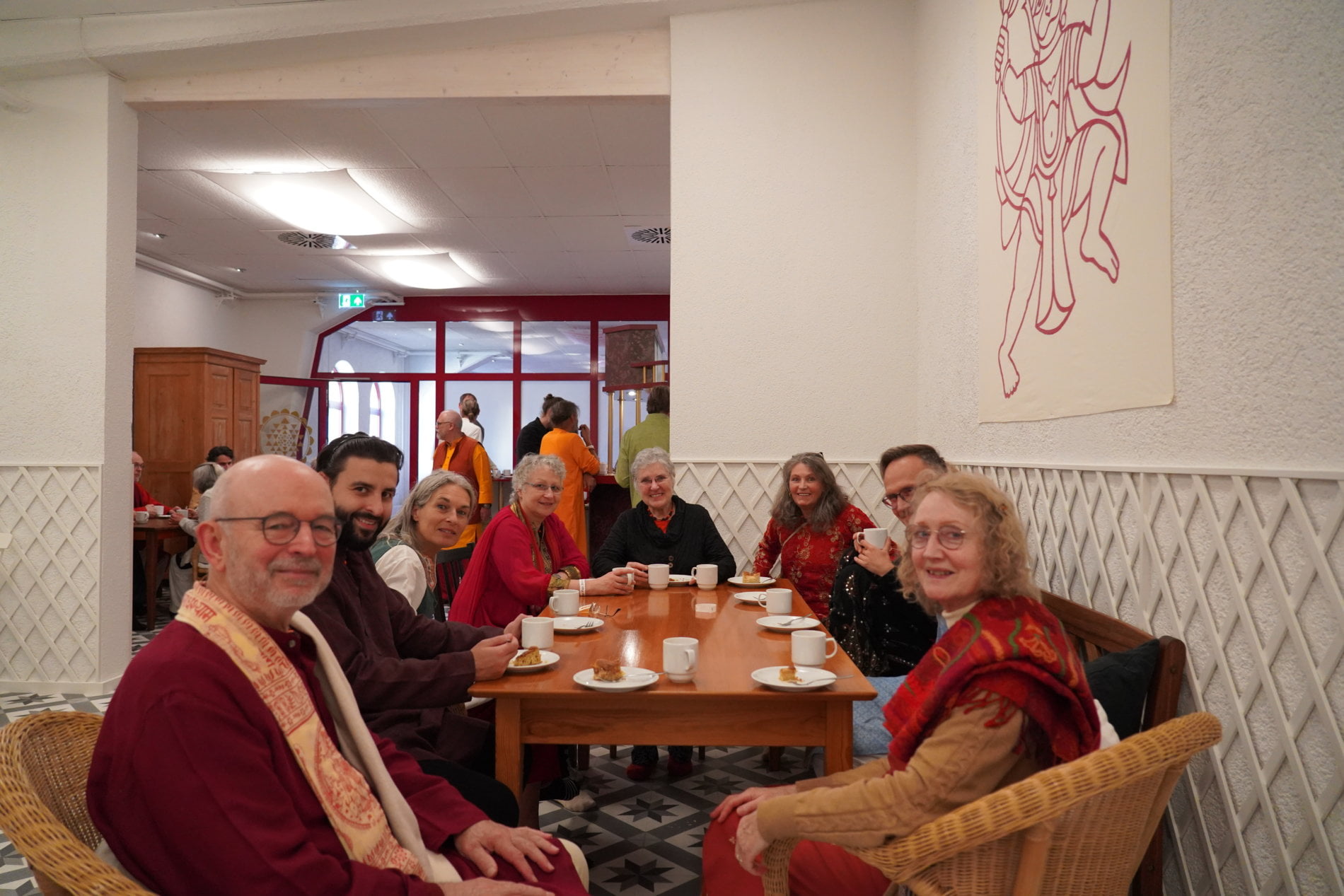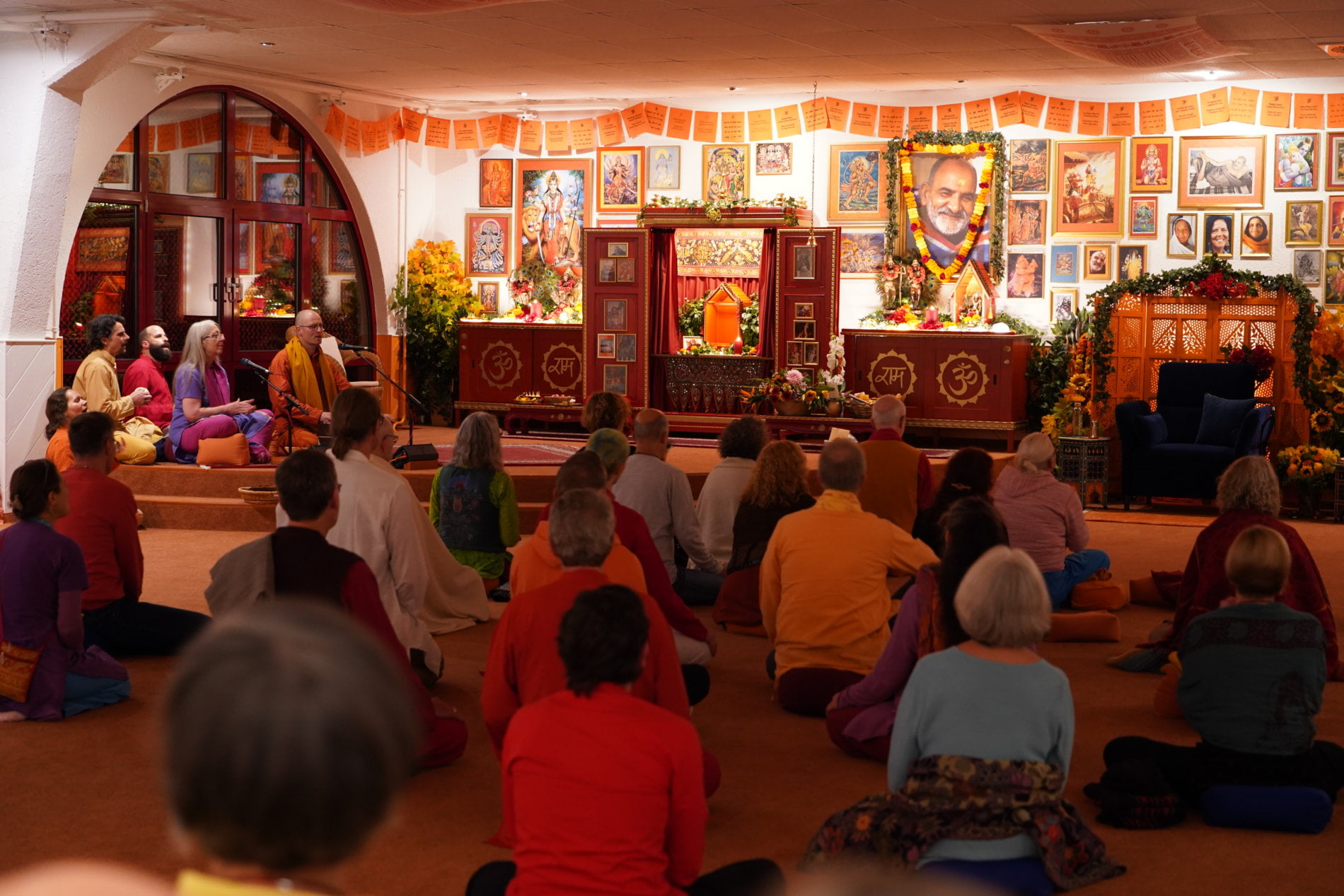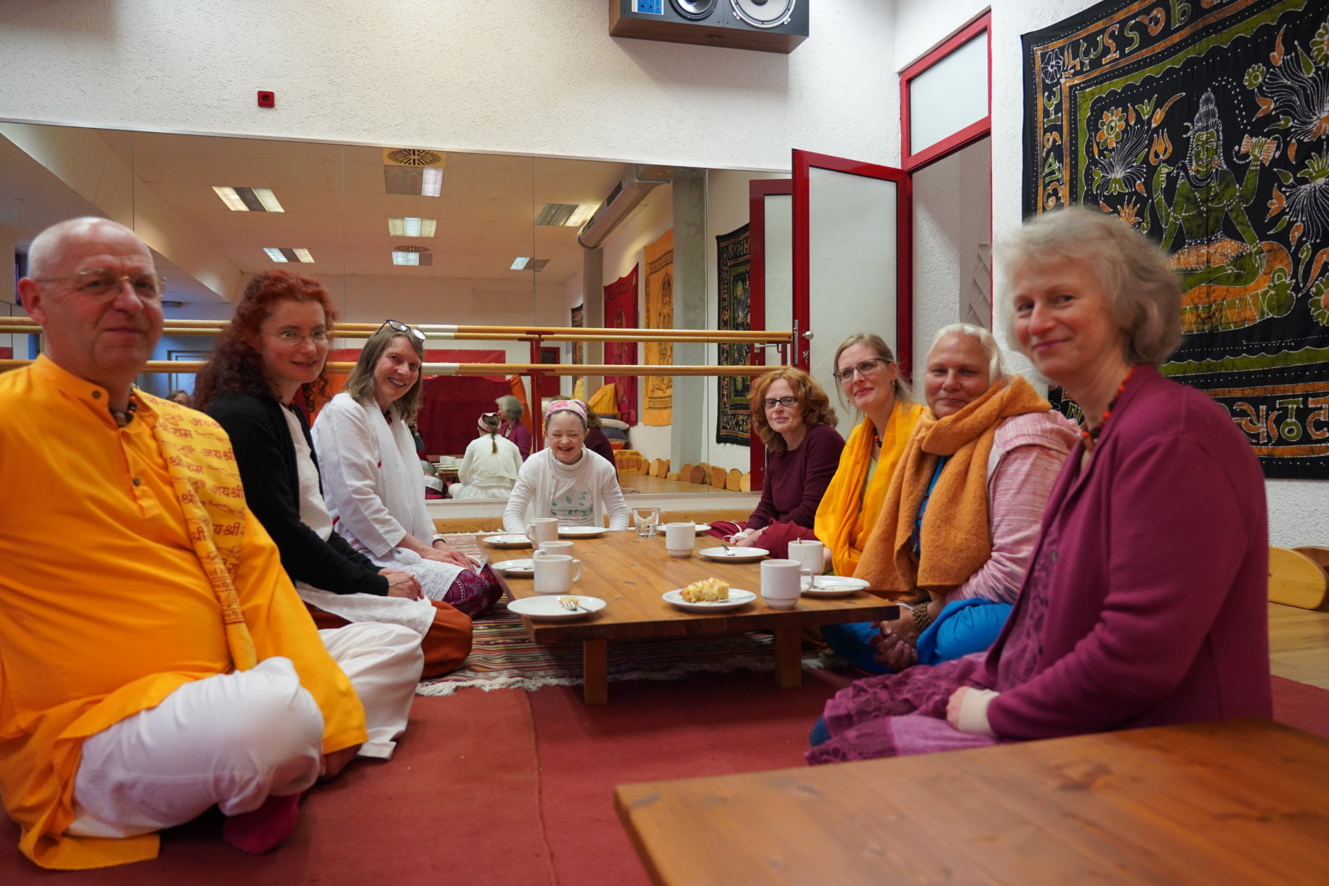 When we were all back in the kirtan hall, chanting in praise of the divine mother resounded – the acoustics are wonderful! And soon it was time for a festive bhandara: Everyone spread out to the seats in the lounge and bhandara room, Ma right in the middle of it all, taking care, that everyone was being served prasad.