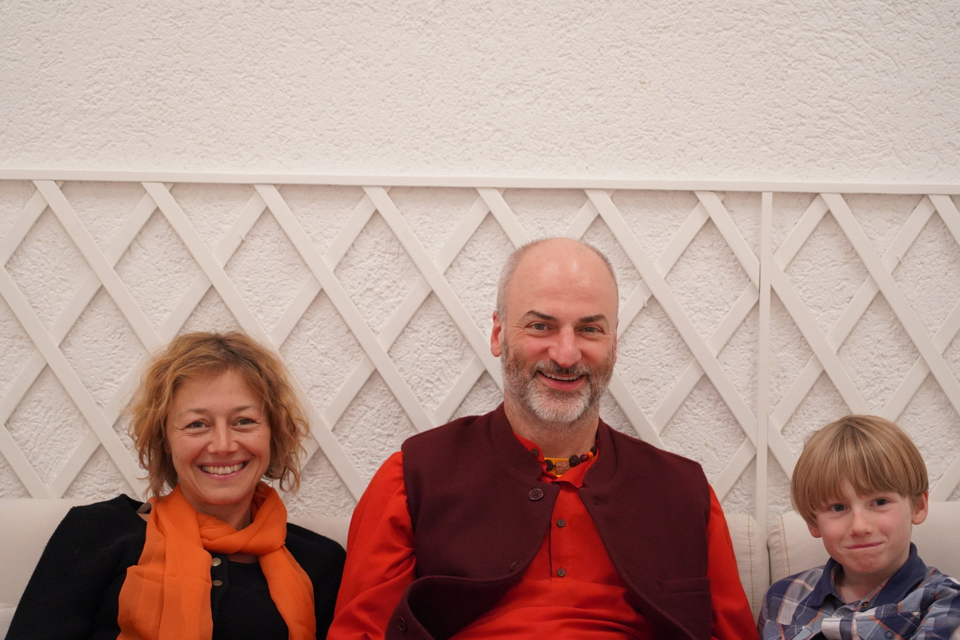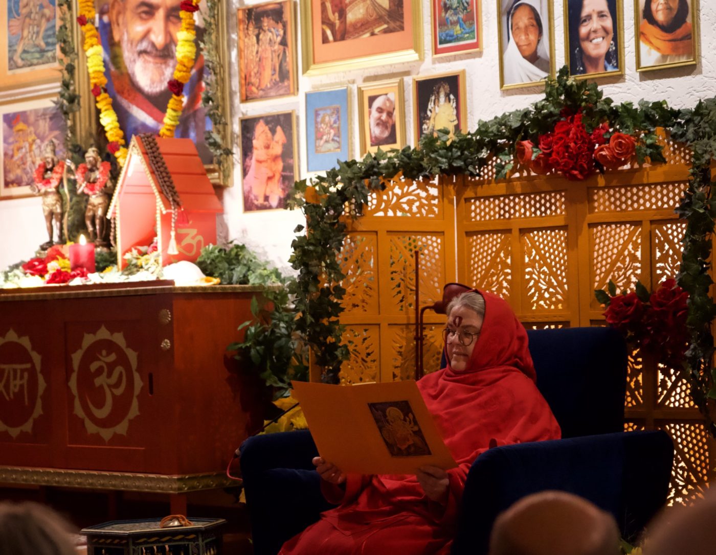 Ma arrived in the morning and stayed at Baba Mandir all day. Immediately after Ma’s arrival, Ma invited everyone to come with her and showed us that part of the ashram, which many didn’t know yet – the “Waiting Room”, the Darshan room, Ma’s “Office” and small kitchenette – all behind the blue door with a golden OM. The rooms are connected in a circle and the hallway is quite narrow, so we kept walking through in one long line – Ma among us, she went round and round several times.
