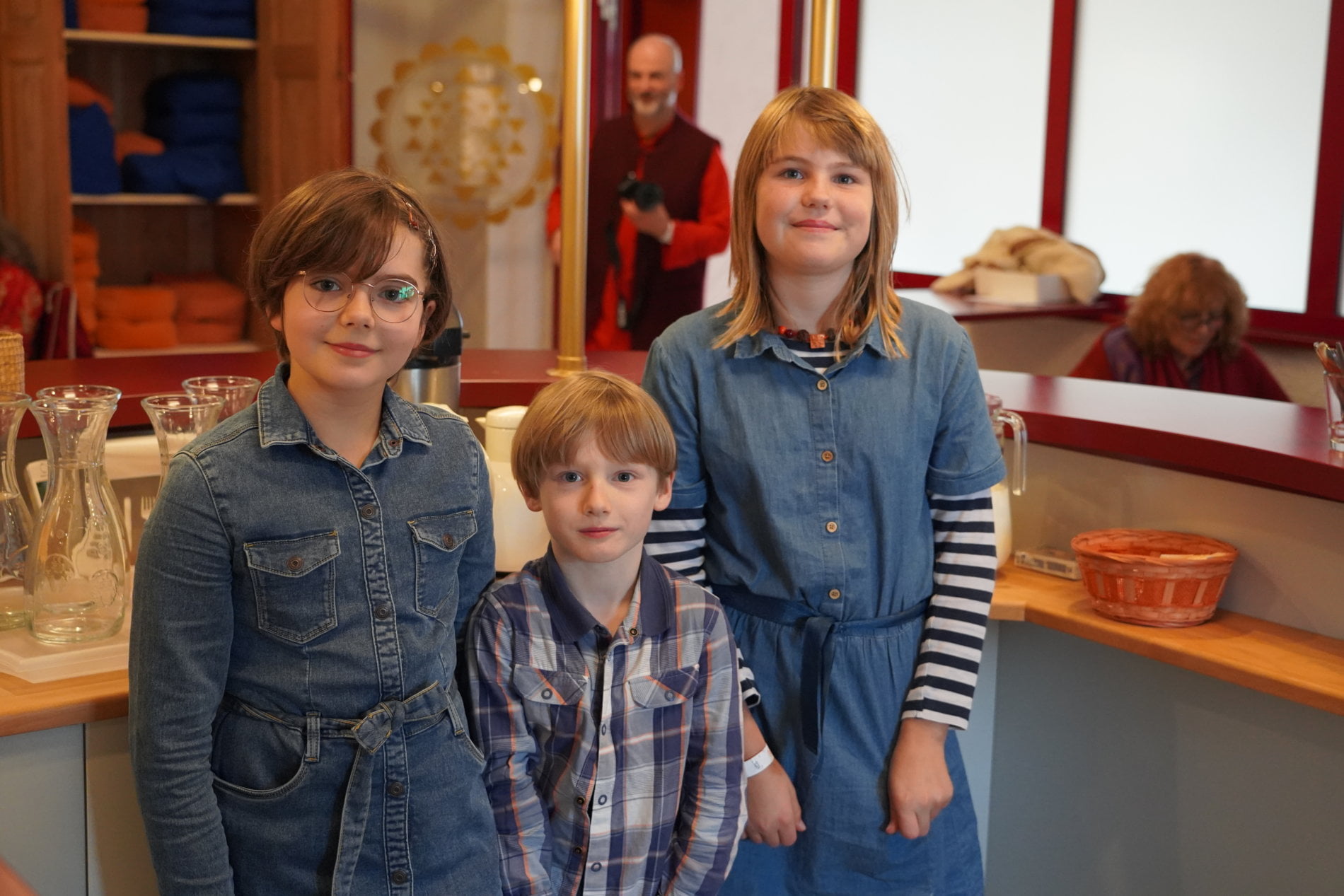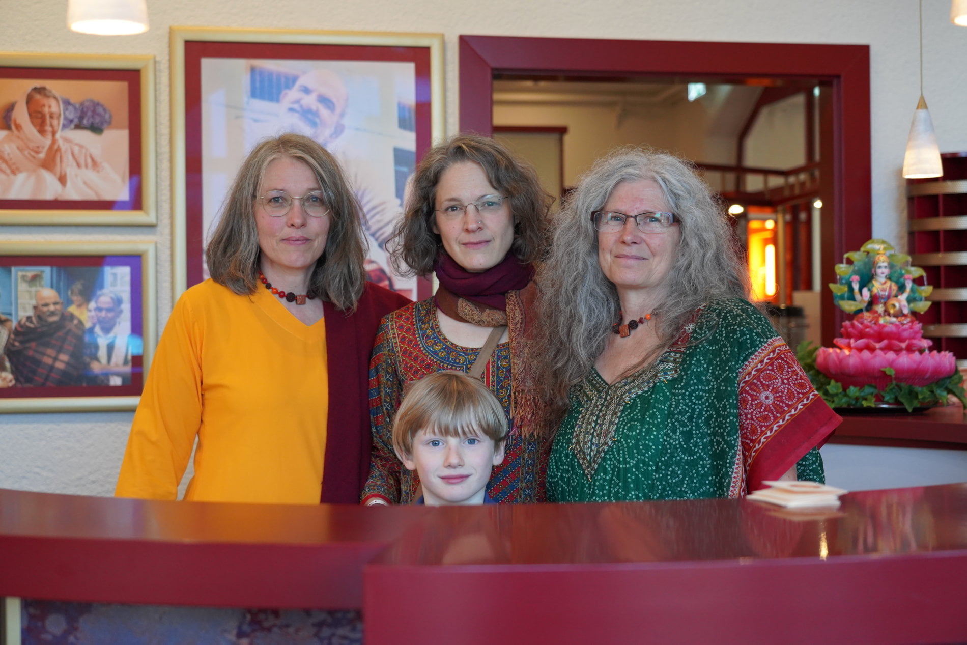 Everything was happening side by side: some having prasad, the children serving at the chai bar with great enthusiasm, some stretched out for a moment in the kirtan hall, someone sang kirtan all by himself – and sometimes Ma’s blue door was open and some chela received Her darshan for a while.
