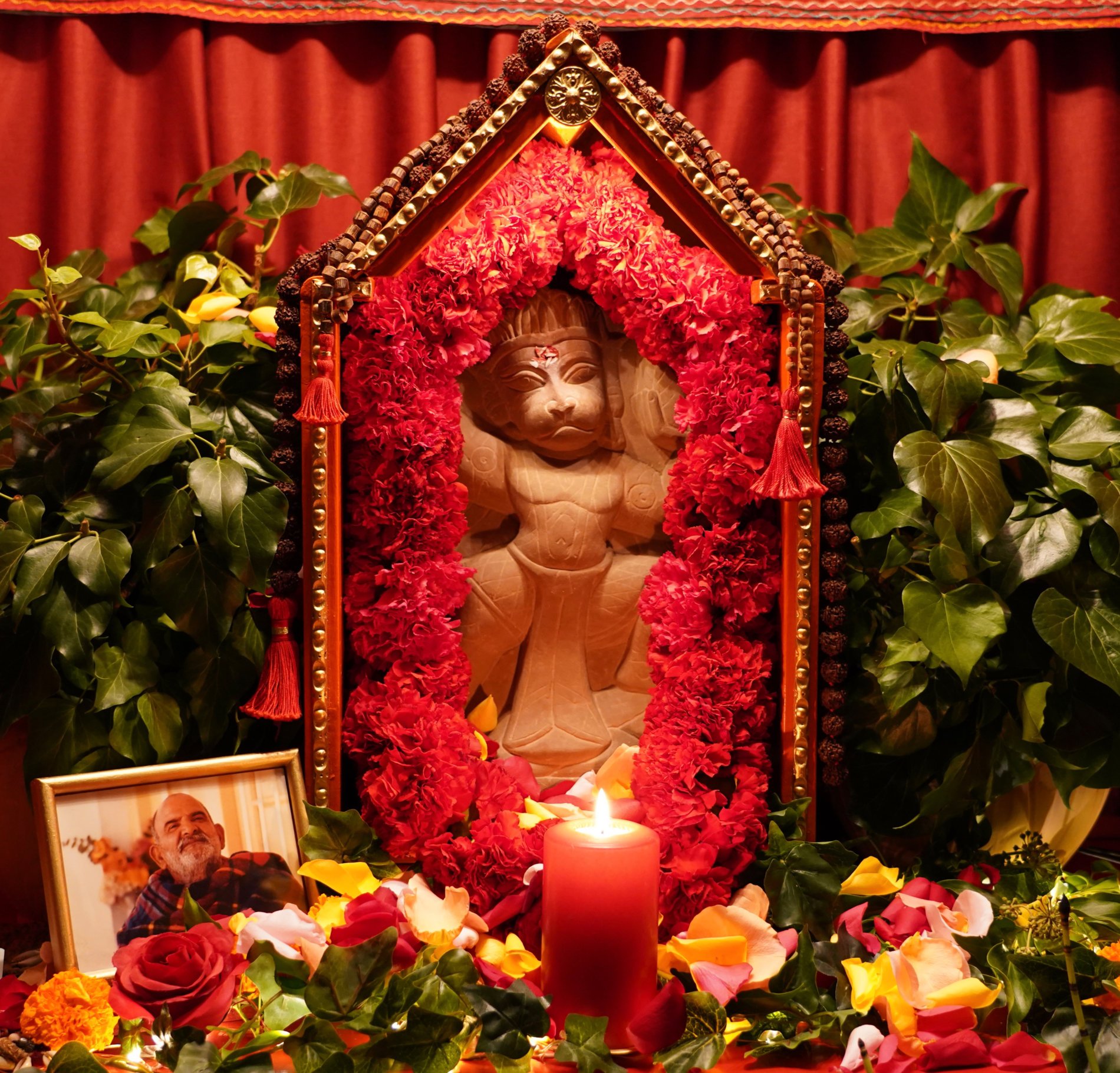 After more than two years of renovation, the moment had come – Durgamayi Ma arrived with the murti of Lord Hanuman in Her arms – which Vishnu Digambar had brought from India in 1974 and which has accompanied Ma ever since. The horns were sounding, all bells ringing, cheers of joy – it was overwhelming!