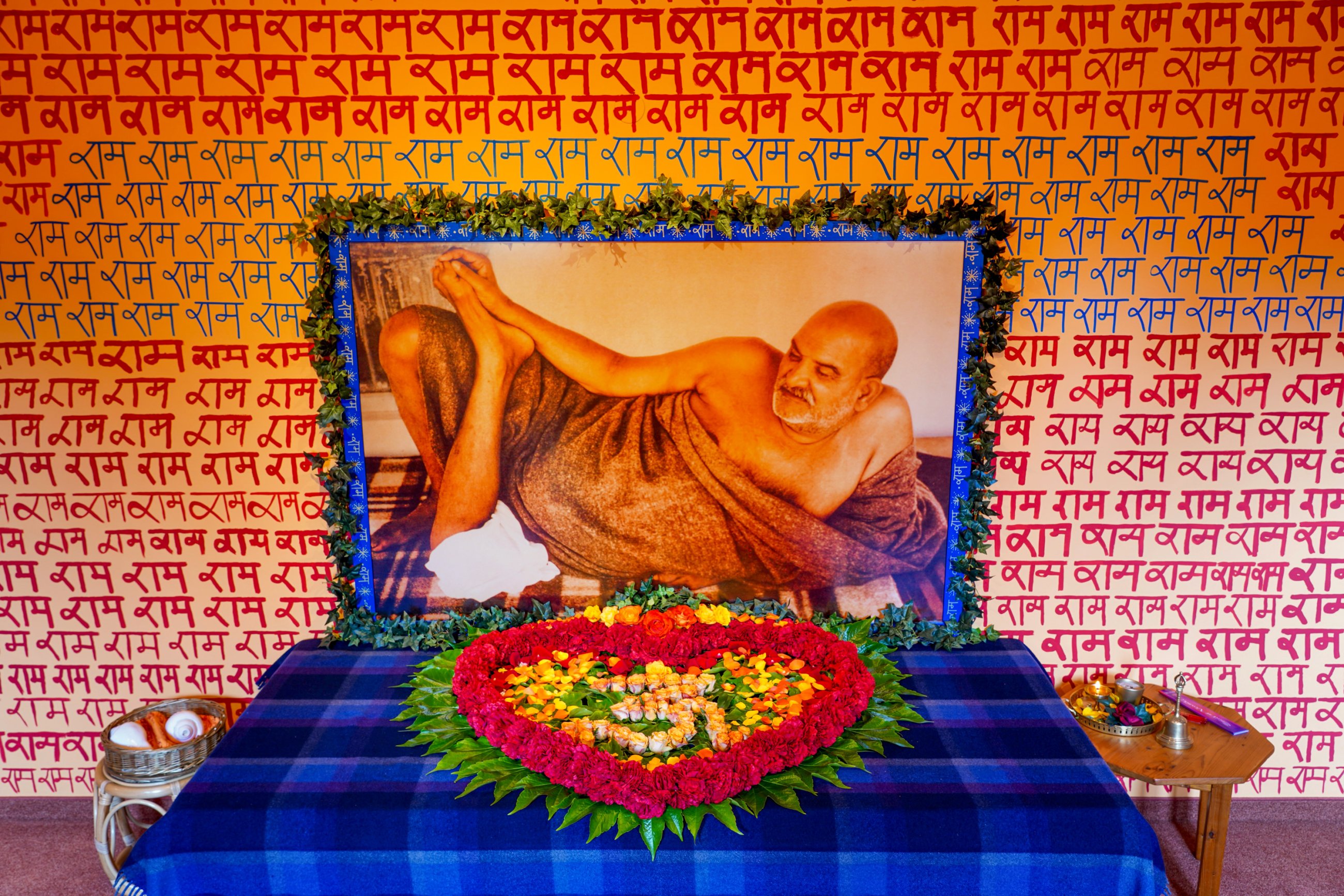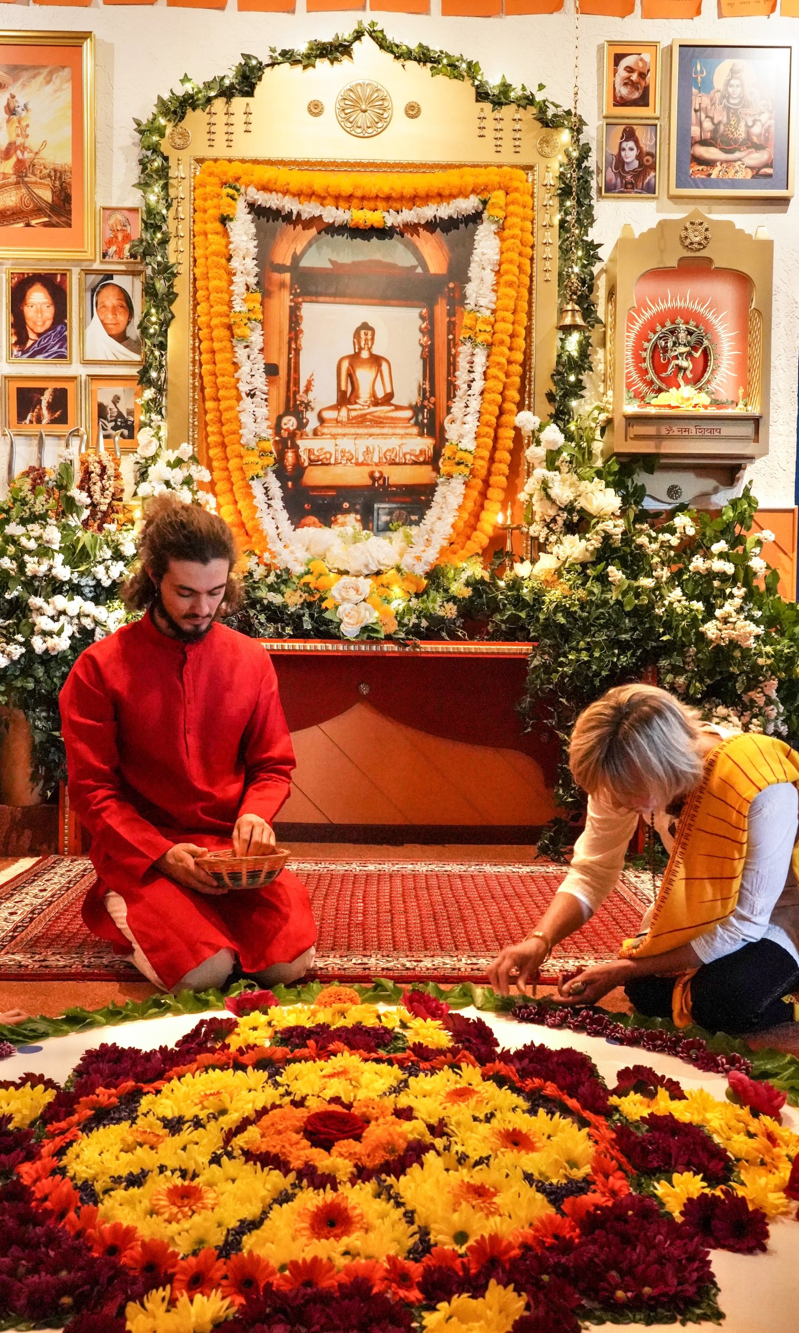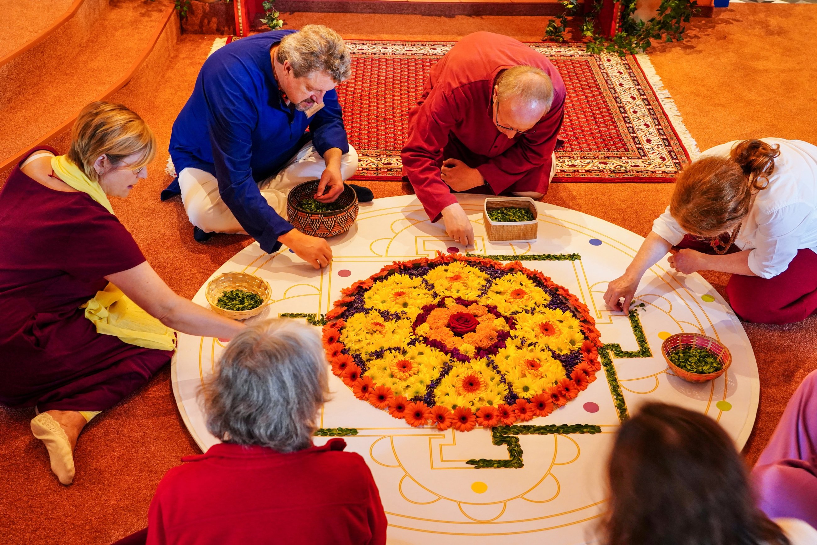 Together we sing Buddhist mantras for many hours and flower by flower we lay a beautiful mandala - immersing ourselves in Ma’s presence. Everything feels like one big, constantly flowing stream.