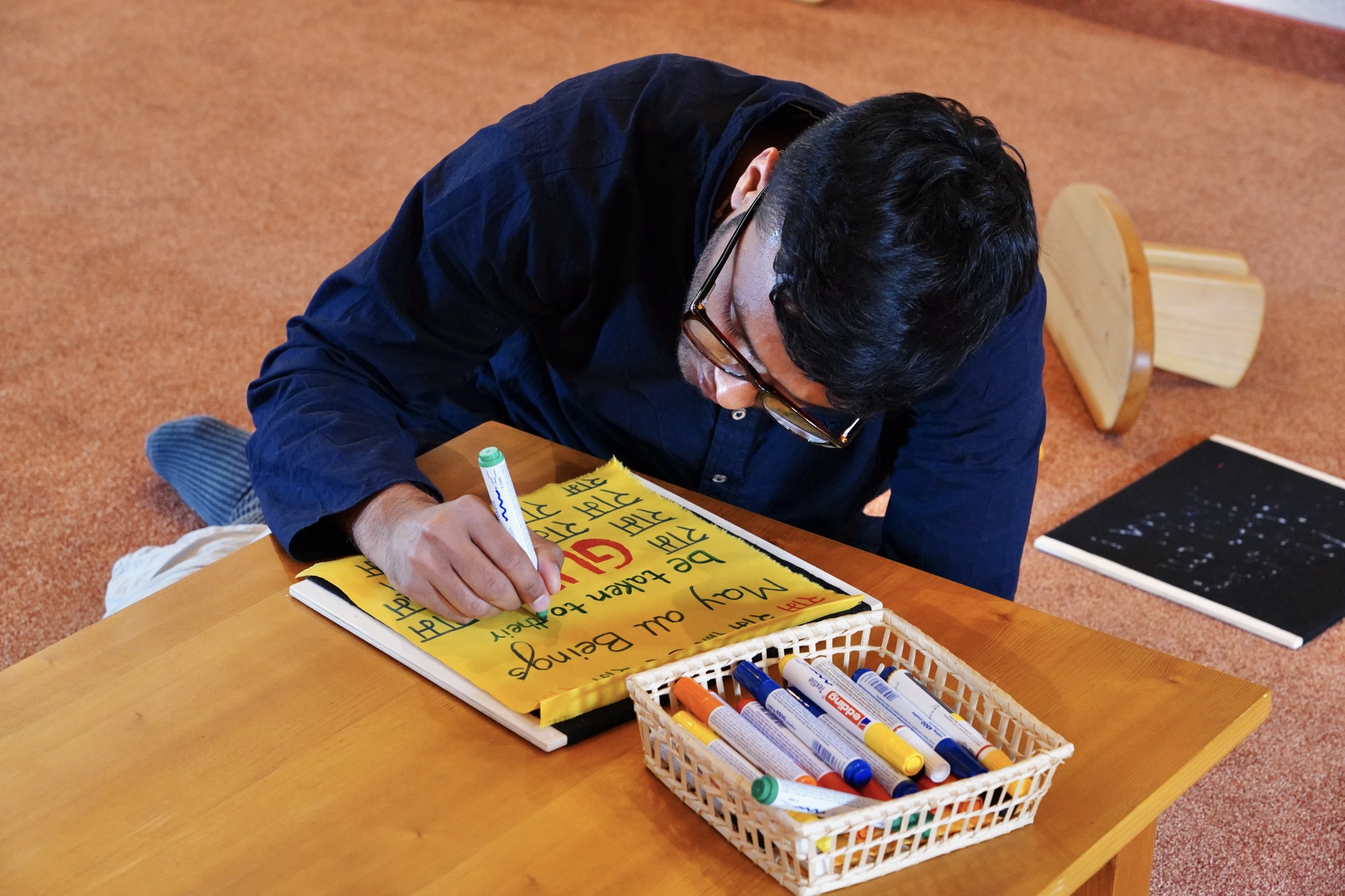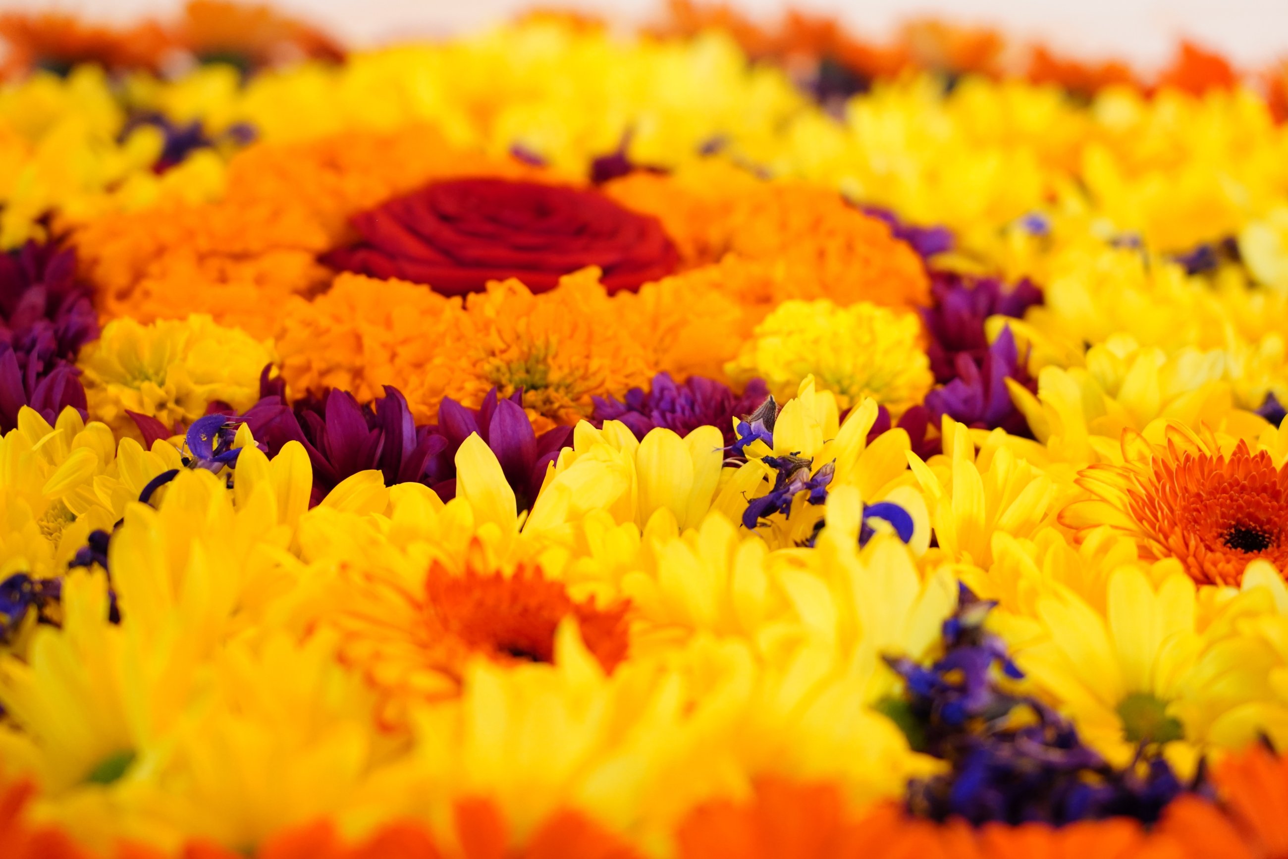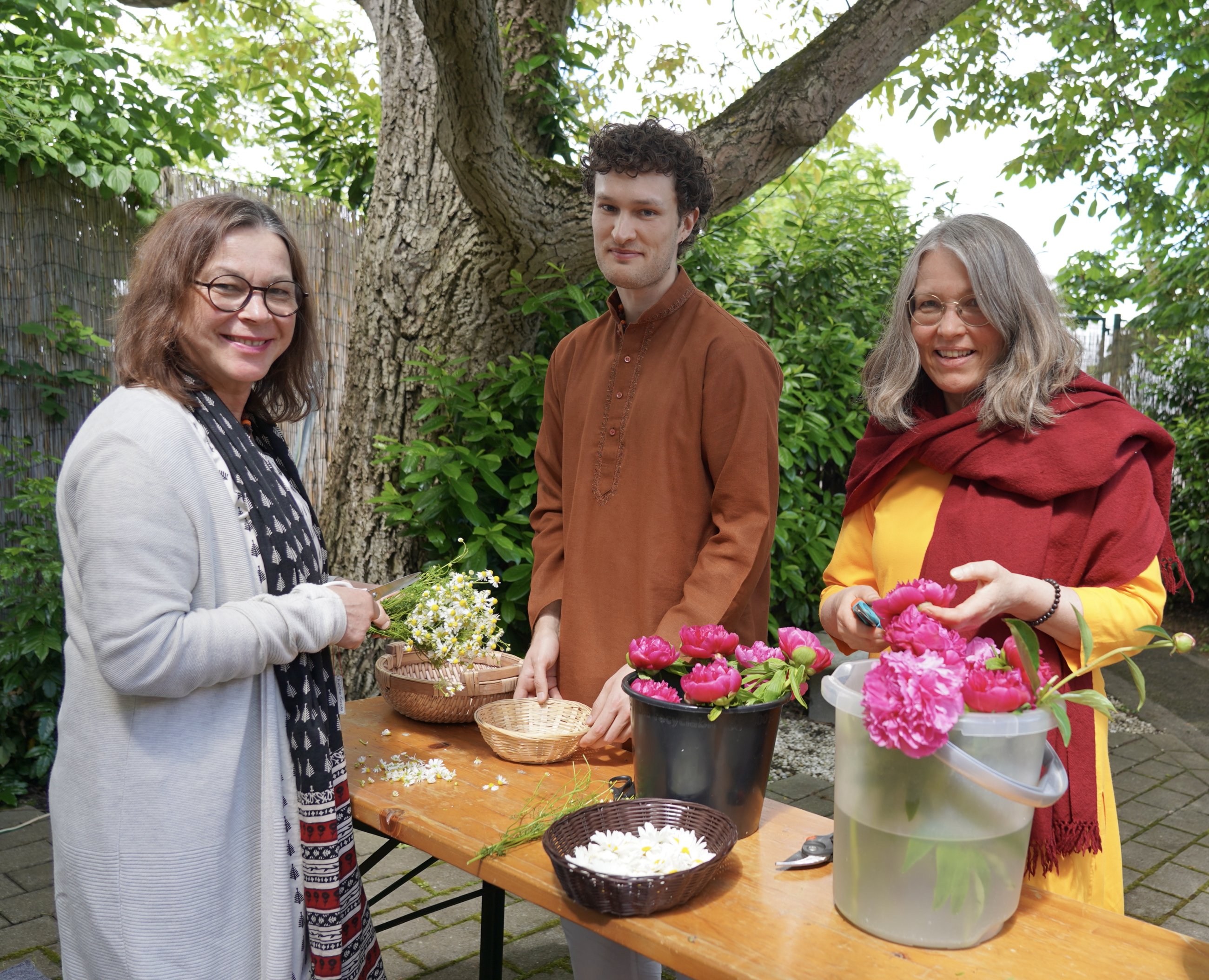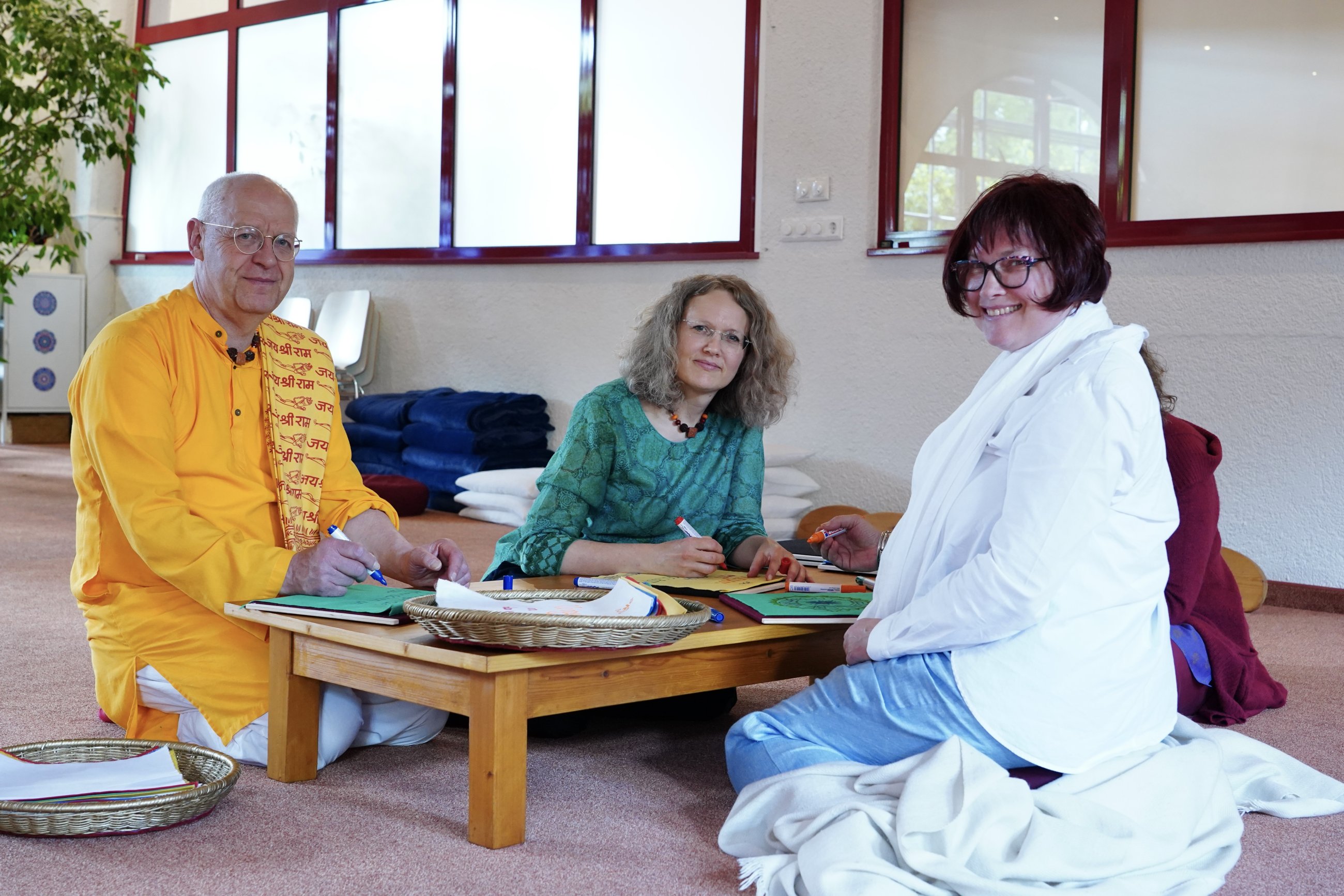 Together we sing Buddhist mantras for many hours and flower by flower we lay a beautiful mandala - immersing ourselves in Ma’s presence. Everything feels like one big, constantly flowing stream.